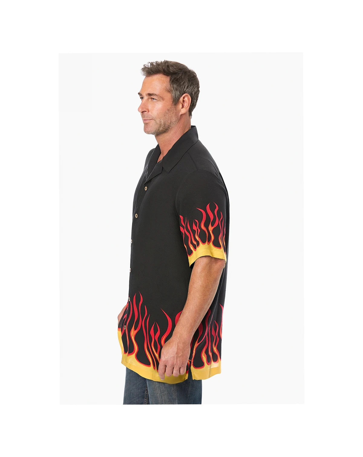 Whether you're on vacation or just enjoying a sunny day at home, our Printed Camp Shirt will keep you cool and comfortable while enjoying your favorite activities. You'll love the breezy open collar, coconut button closures, and +15 vibrant patterns for you to choose. Relaxed fit. Open collar. Chest pocket. Straight hem with side vents. Coconut button closures. Big abt. 34" Tall abt. 36". Woven rayon. Machine wash. Imported NOTE: Navy Floral Panel colorway does NOT have chest pocket.