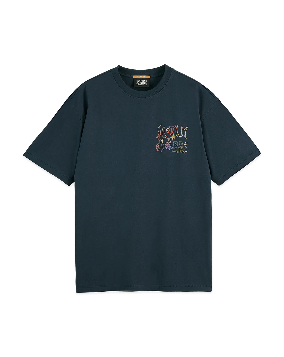 Featuring artwork at both the front left chest and center back, this relaxed short-sleeve T-shirt from SCOTCH & SODA offers dynamic visuals from every angle. The collarless design ensures comfortable, everyday style.