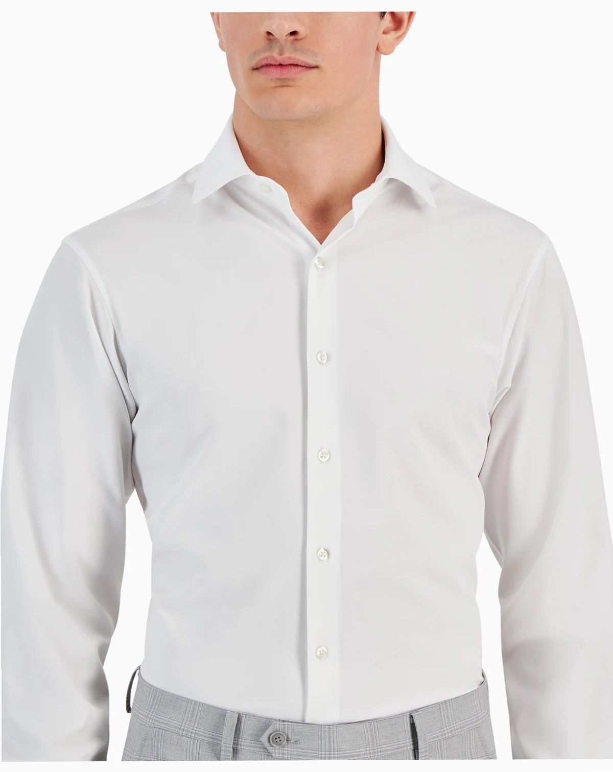 Build yourself a crisp, versatile button-down look with this solid white stretch-performance shirt from Alfani®.