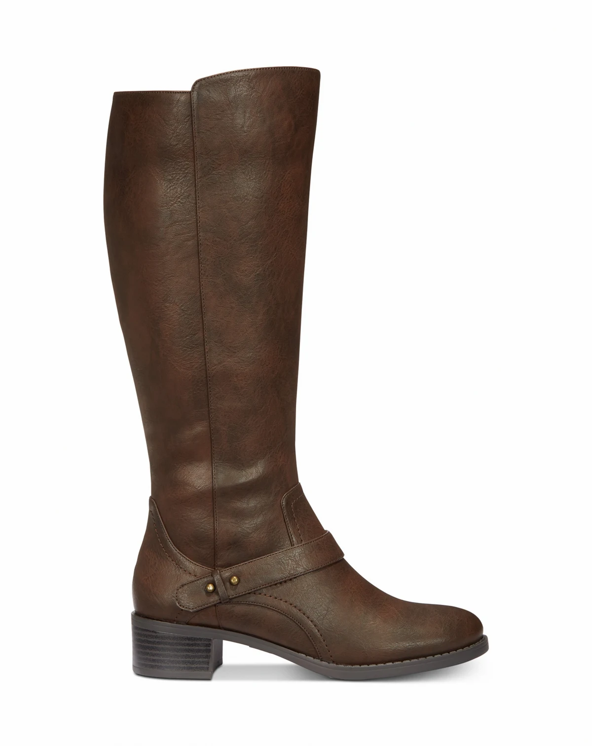 The Jewel riding boots by Easy Street accent dressy and casual looks alike with a sleek silhouette and studded strap detail on a chunky block heel.
