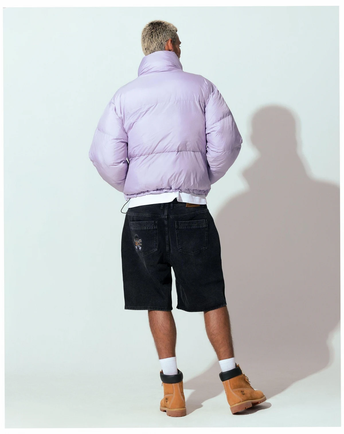 Cozy up in the hottest looks of the season, thanks to Loiter with the Eden Puffer Jacket. This jacket boasts embroidered graphics with contrast panels for a bold look that can't be beat. The dropped shoulders and elasticated trims gives you a super flattering fit, while the adjustable toggle at the hem lets you customize your look.