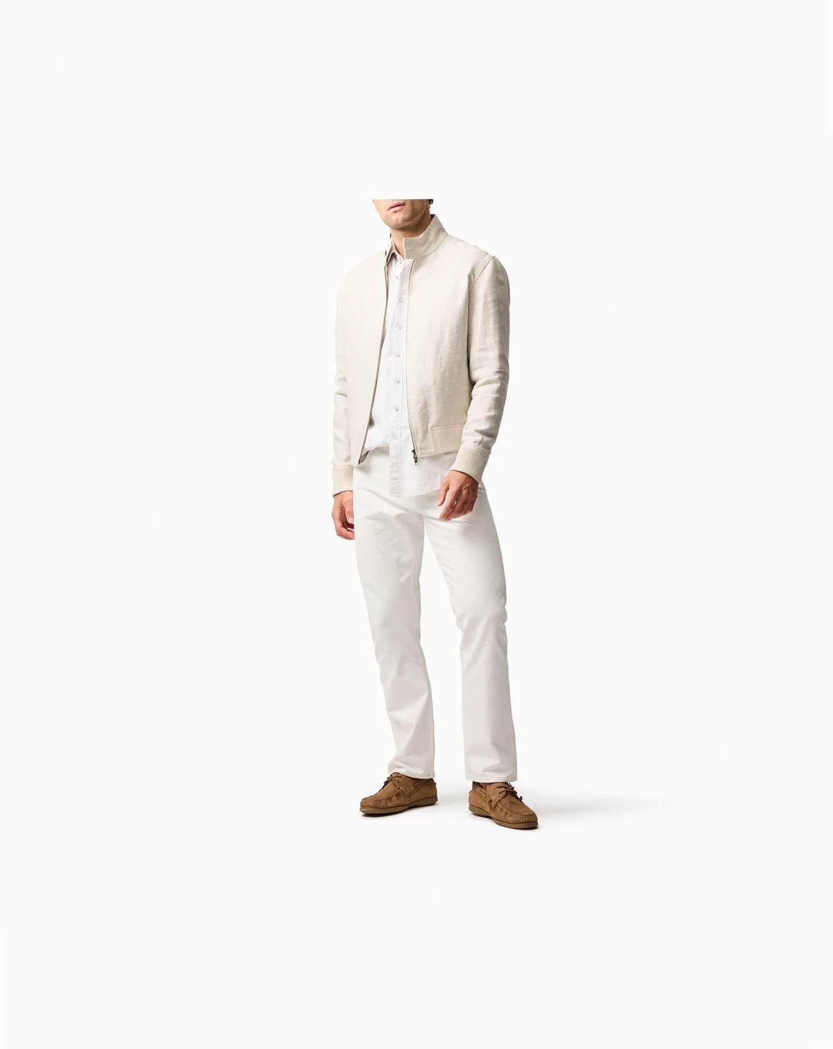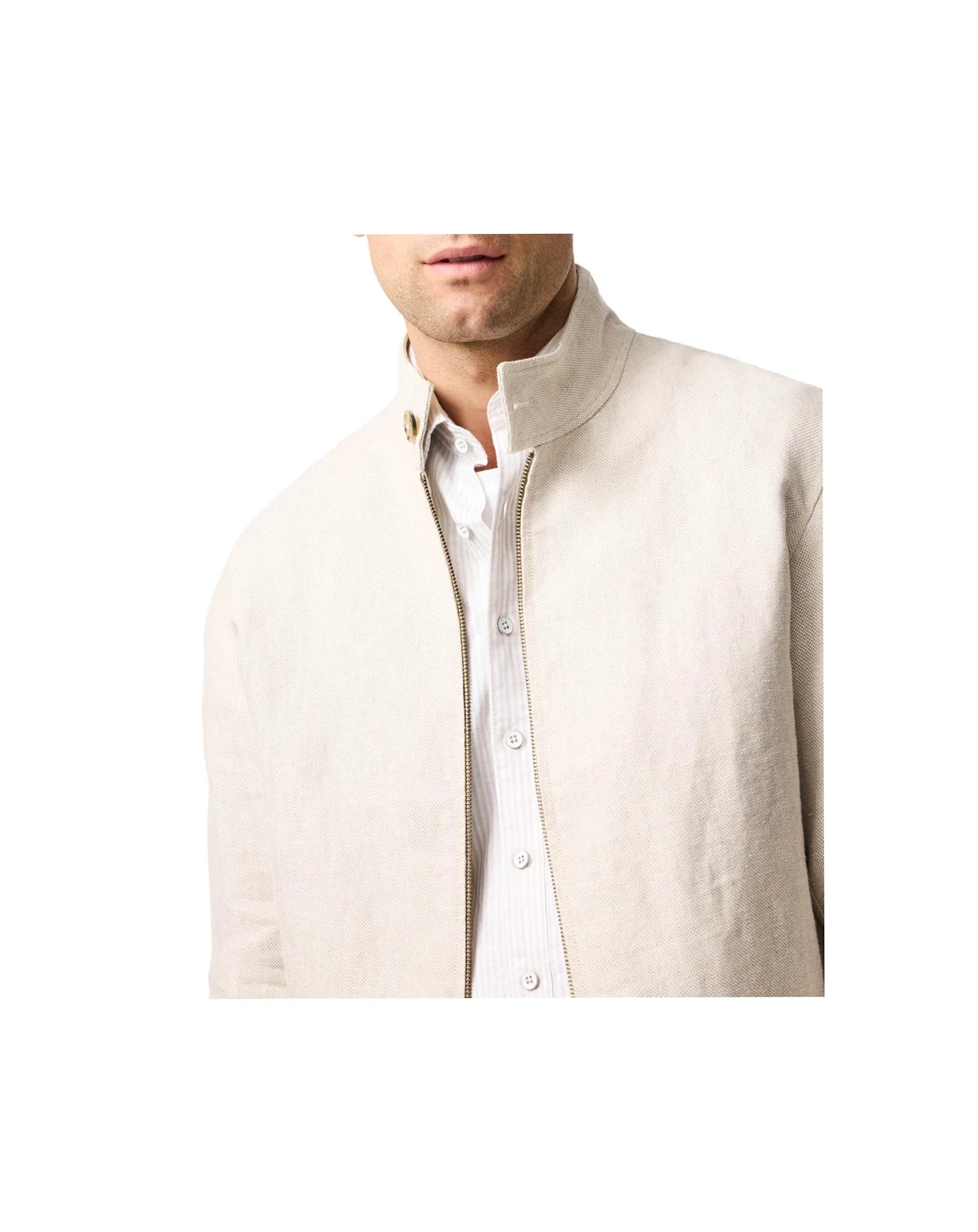 This elevated bomber jacket features premium linen fabric crafted by renowned Italian mill, Manteco. The relaxed fit pairs effortlessly with jeans or chinos, while the chunky ribbed cuffs and hem add a touch of texture.