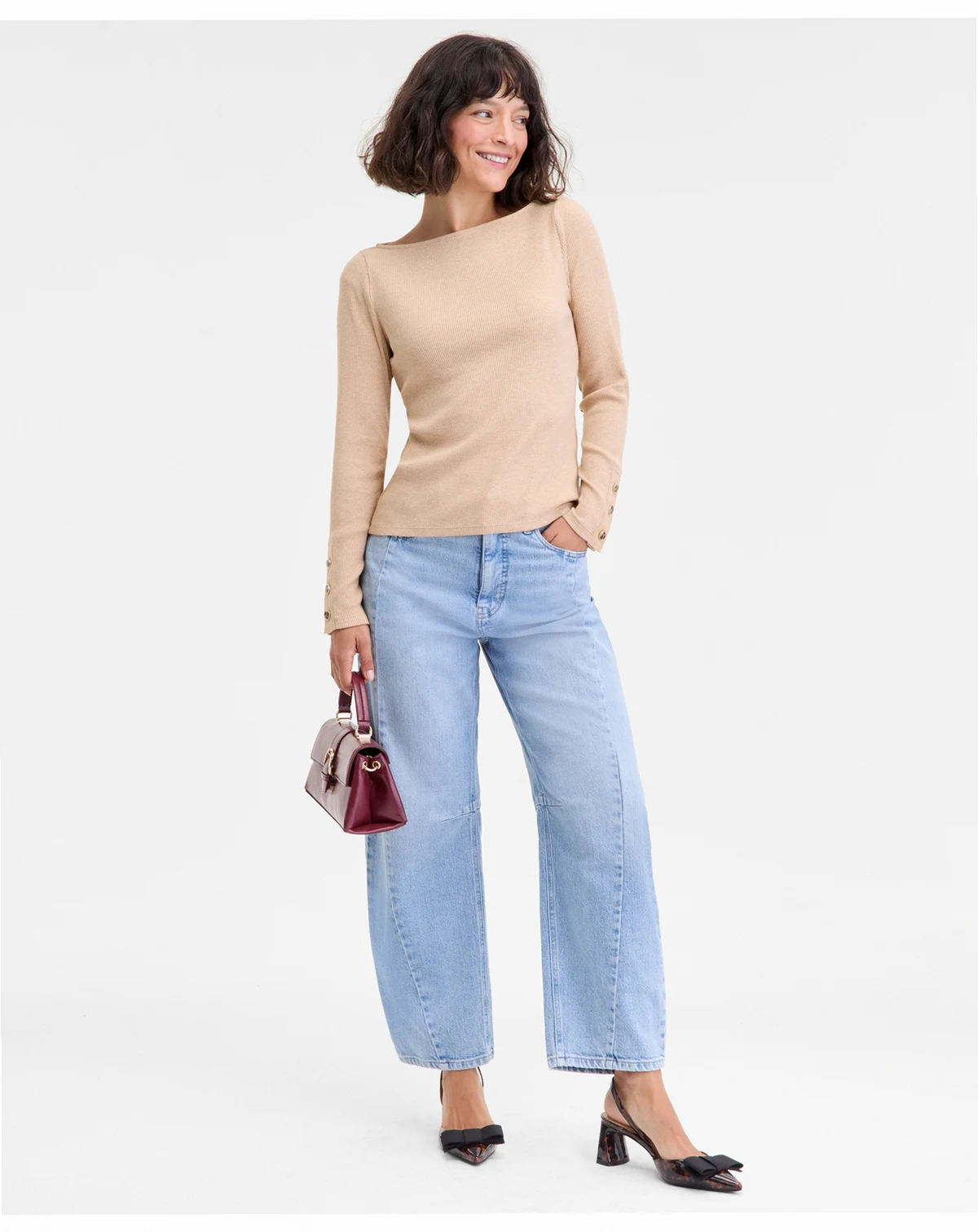 When the usual T-shirt won't cut it, go for our boatneck top instead. Decorative buttons at the cuffs lend jewelry-like finishing touches. ABOUT THE BRAND: Our brand was designed for, and with women like you. Made for your body, your style, and your truth. As your wardrobe's best friend, these mix-and-match pieces work with everything in your closet.
