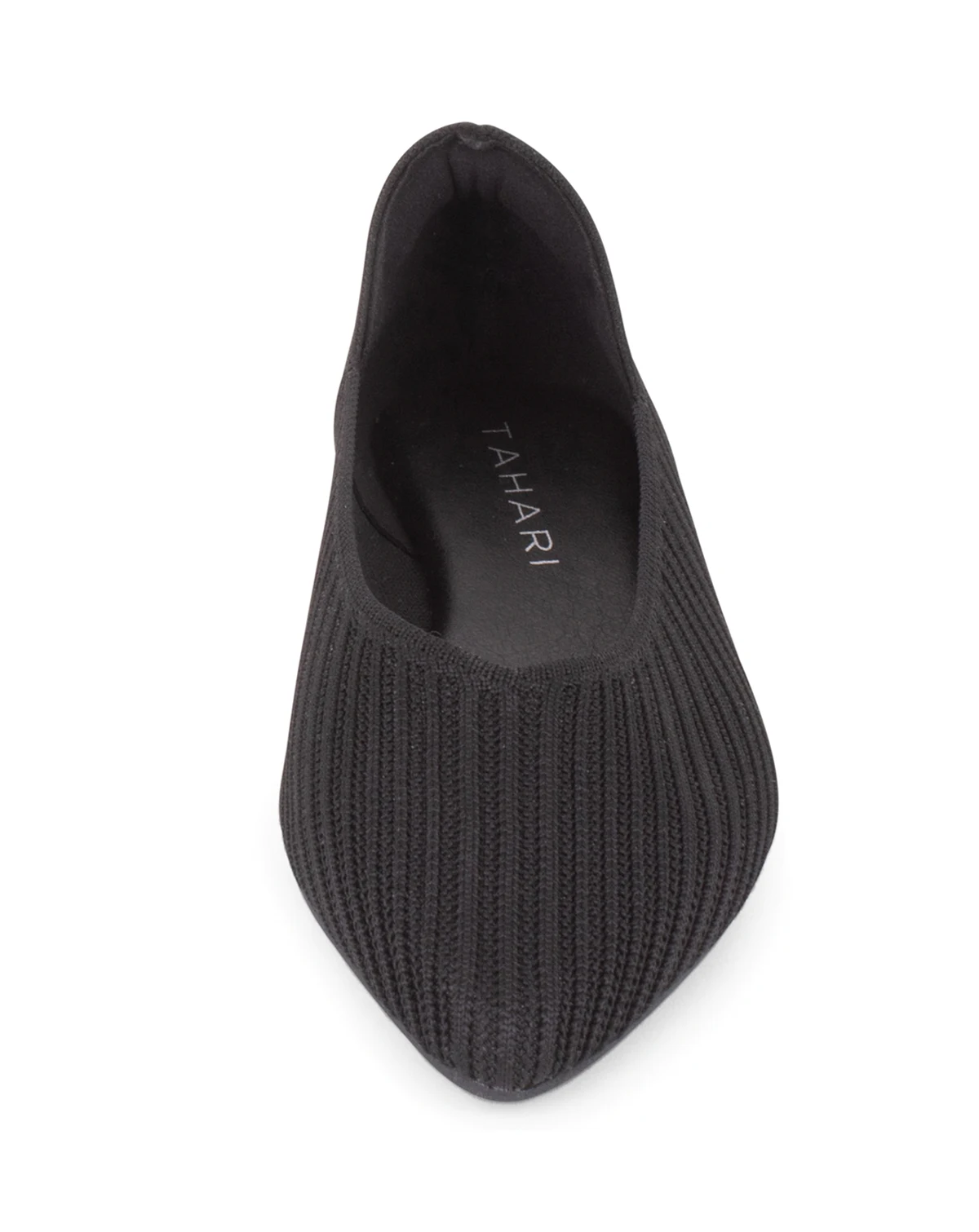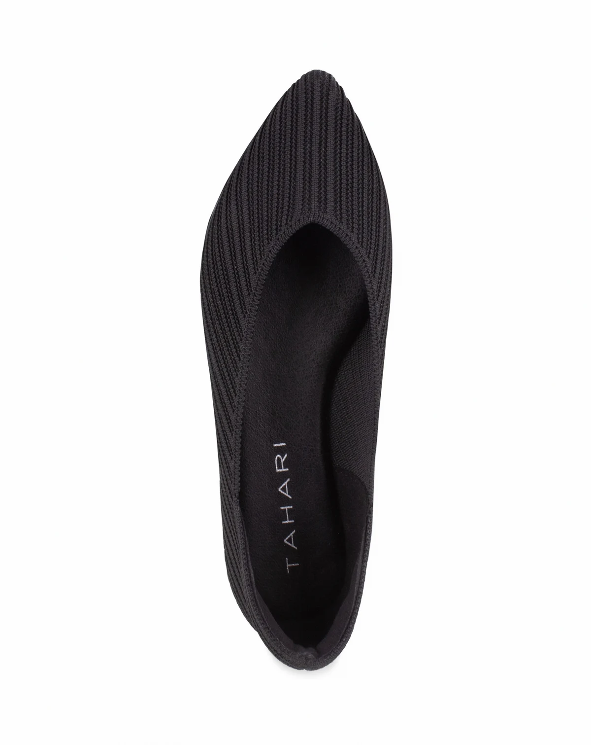 Tahari Women's Maldives slip on pointed toe ballet flat with breathable rib knit upper. Sophisticated and stylish design for all day wear and support.