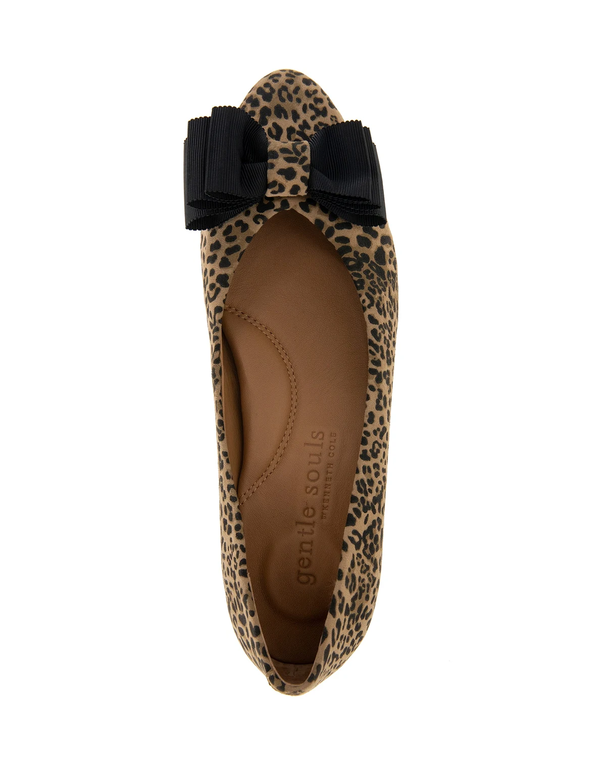 Pointy toe flat with bow detail multi-layered comfort system utilizing poron performance cushioning.