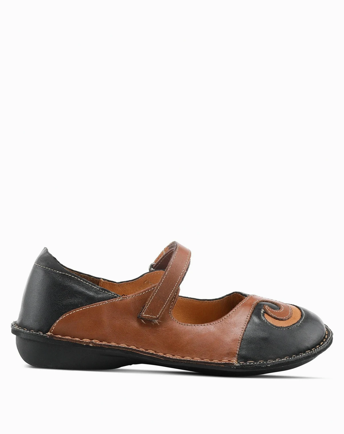 COSMIC Leather Mary Jane Flats with Hook-and-Loop Strap and Contrast Stitching
