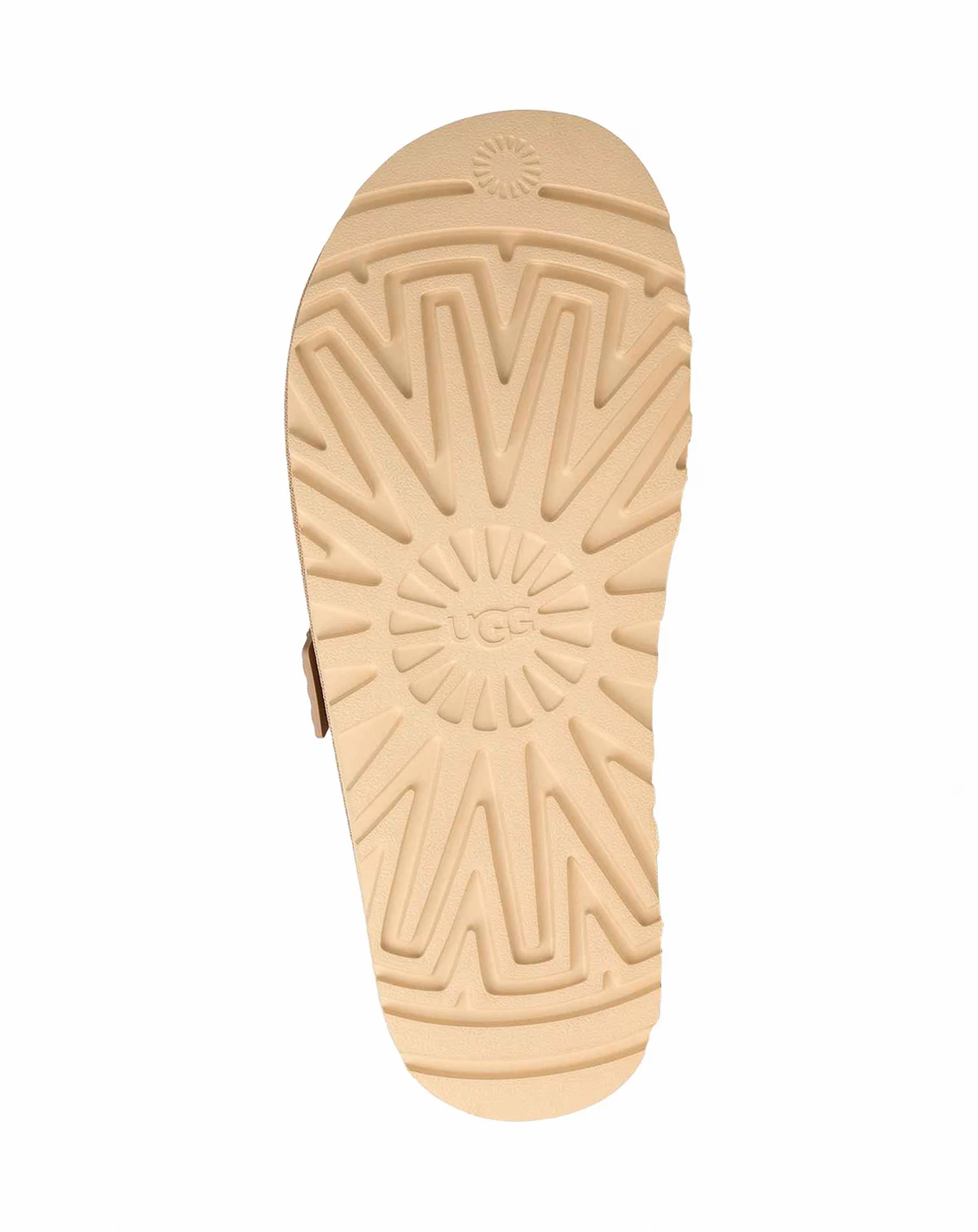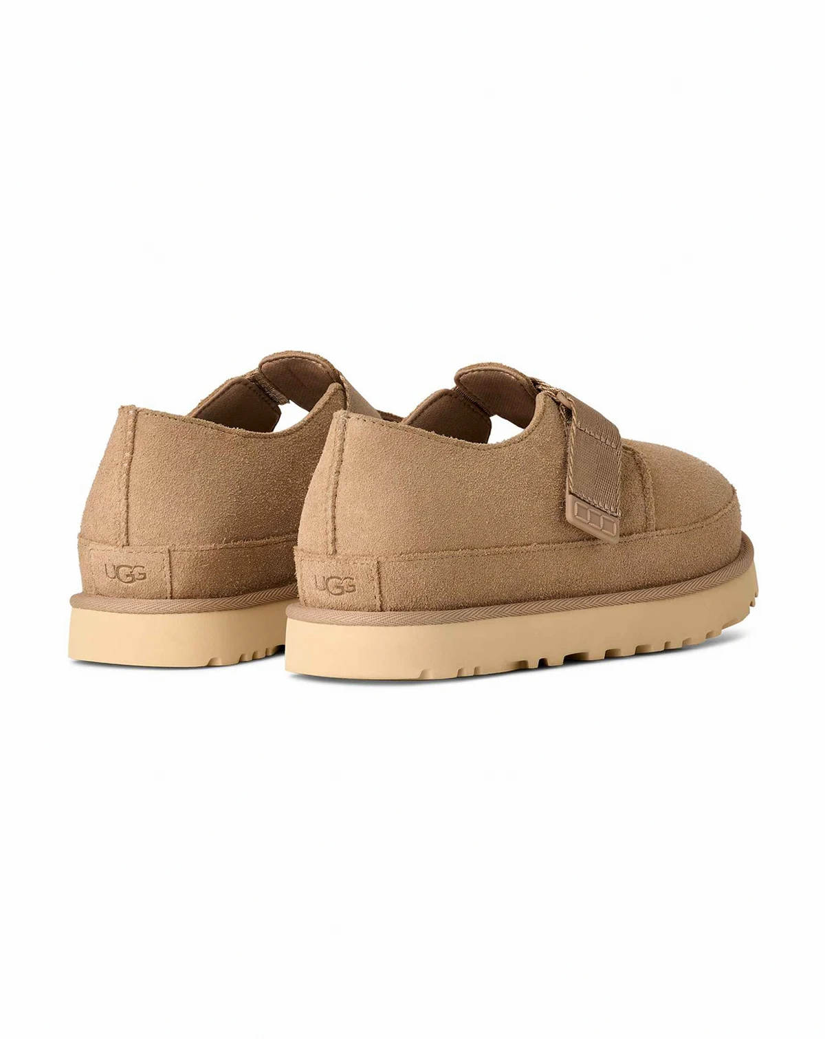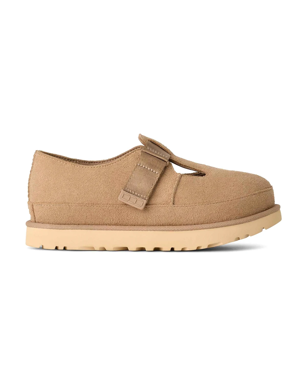 * Suede upper * Adjustable instep strap, Hook-and-loop closure, TPU strap end with The Graphic UGG® Font * Textile lining made from 100% recycled polyester fibers * The sockliner textile is made with 100% recycled polyester fibers, Sockliner incorporates peppermint-based anti-odor treatment * Contoured EVA footbed * Sugarcane EVA midsole made with recycled EVA regrind * Sugarcane EVA outsole * Recycled polyester binding * The UGG® Logo, embossed * RN 88276