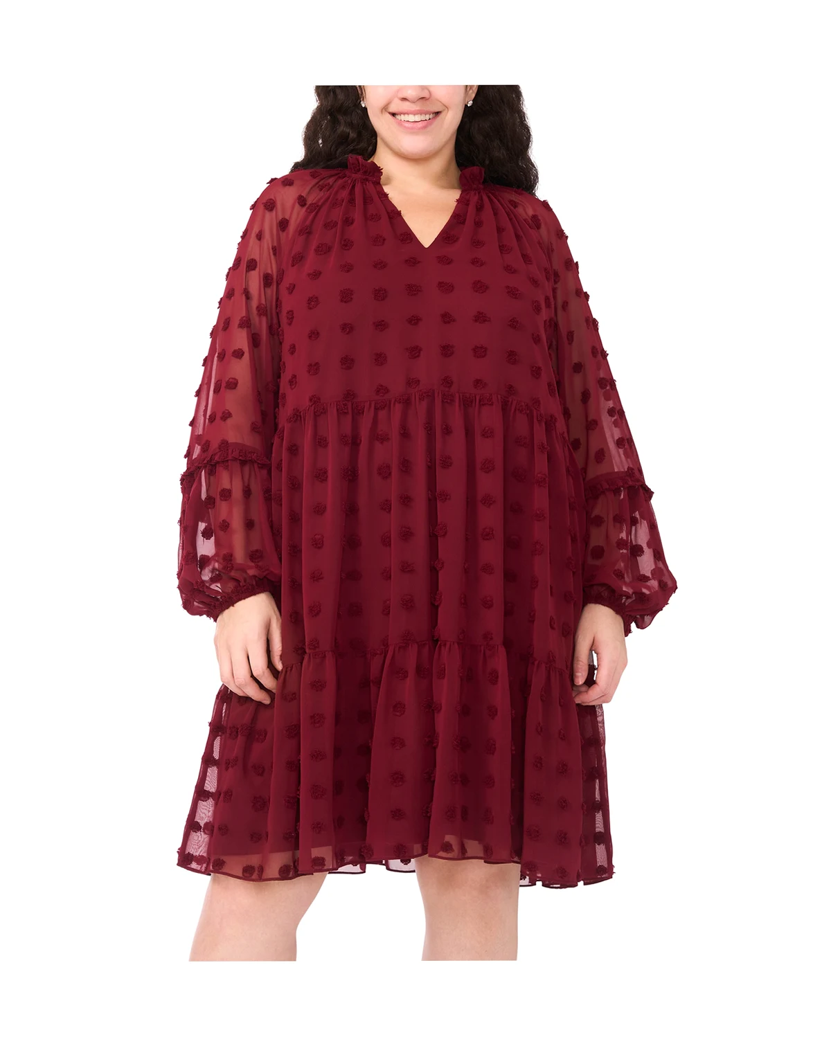 Flowing with a graceful babydoll silhouette, this chiffon dress from MSK provides an airy and whimsical feel. A V-neckline and long sleeves offer a balanced look that is both charming and sophisticated.