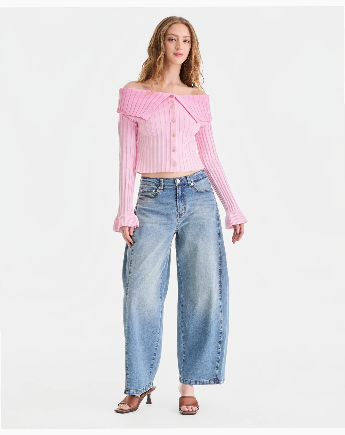 Women's Off-The-Shoulder Button-Front Sweater, Macy's Exclusive