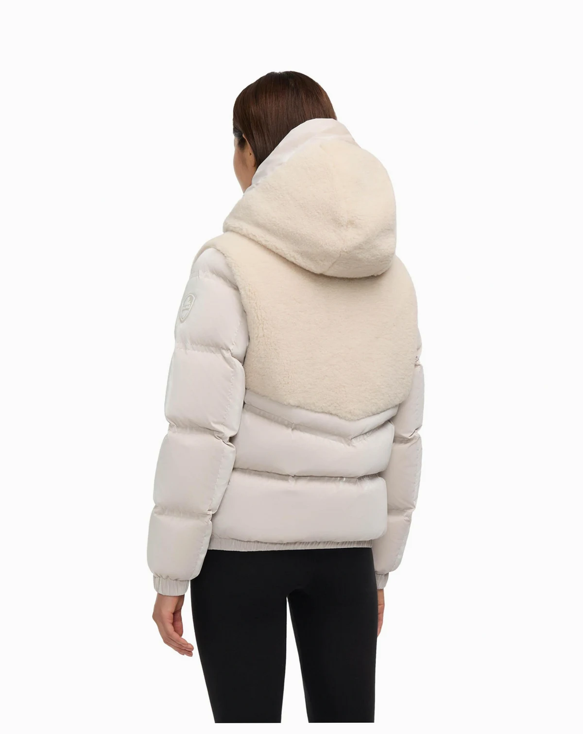 Shell: 100% Nylon Combo: 100% Faux Sherpa Lining: 100% Polyester 80/20 Duck Down | US2000 Standard; Faux Shearling Panelling at Hood with Adjustable Faux Leather Drawcords