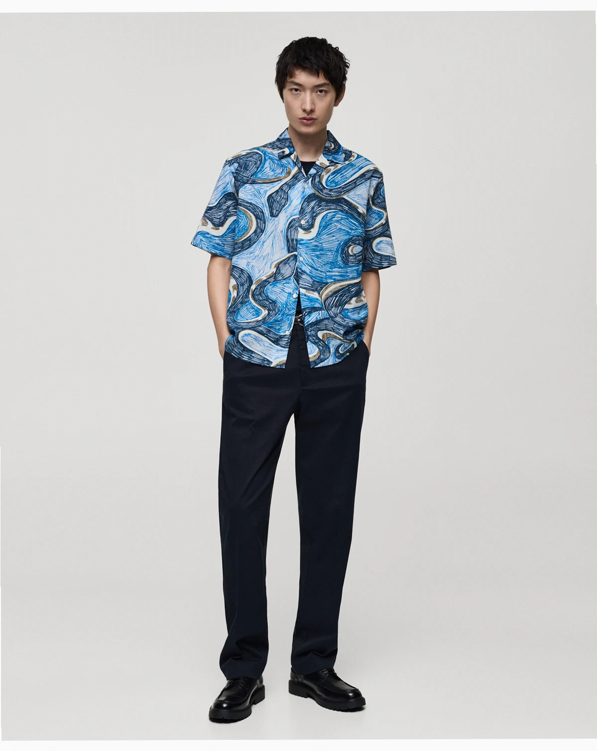 The model is 6'1" and is wearing a size M; Approx. 30.51" long; Regular fit; See size chart above. Mango is based on EU sizing and has a slimmer fit than that of US sizing.