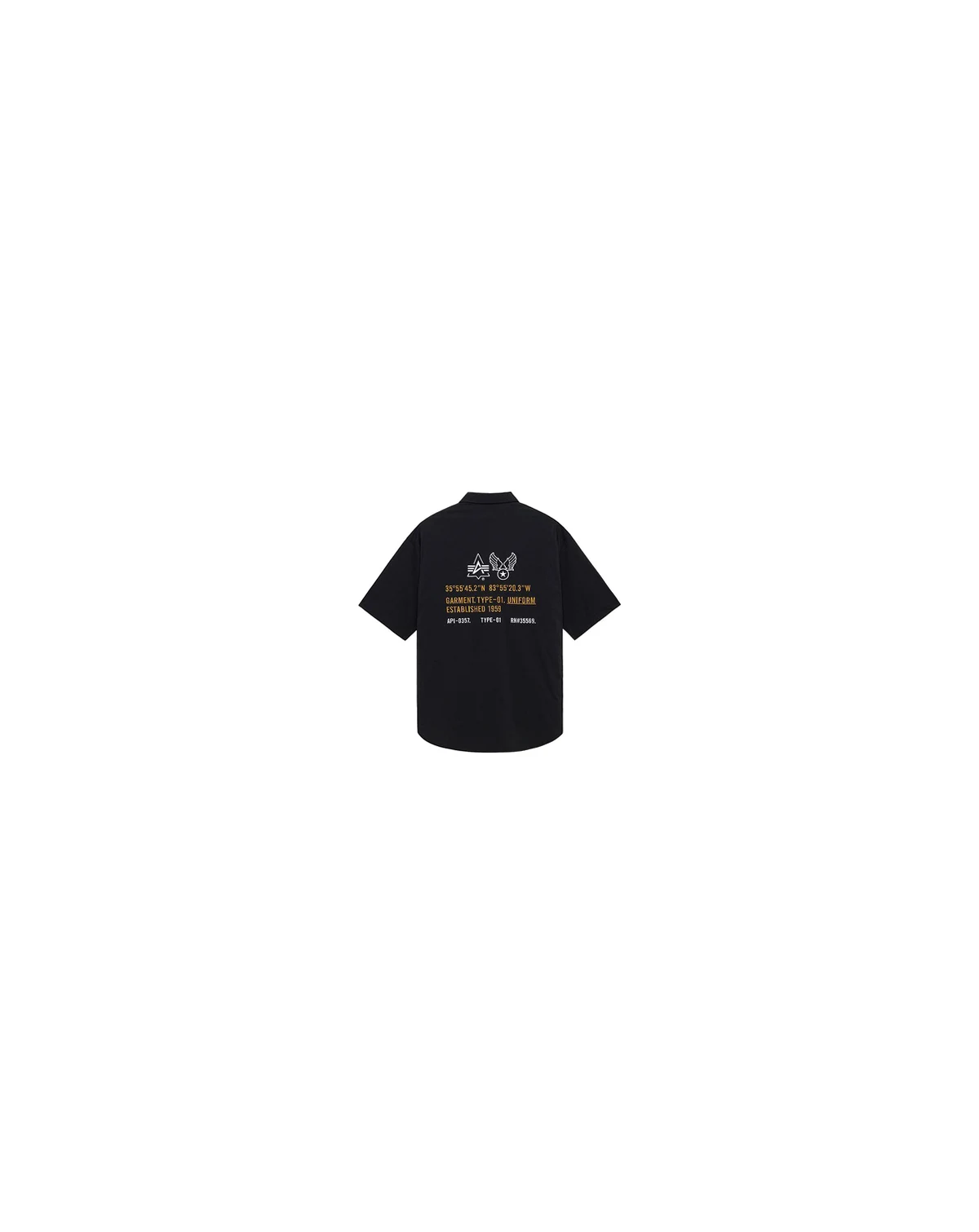 This relaxed-fit, short sleeve shirt is made of a nylon blend and features an Alpha Industries graphic on the center back. The graphic features the coordinates for the location of the original Alpha Industries facility in Knoxville, TN.