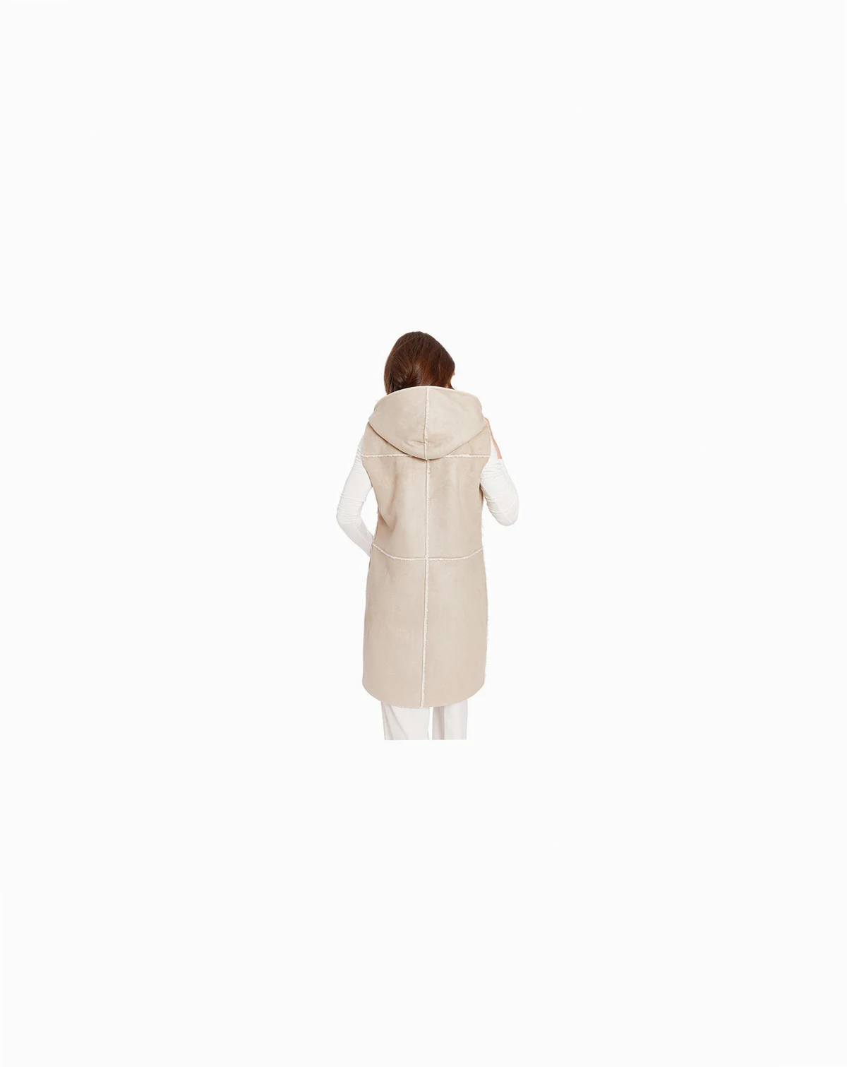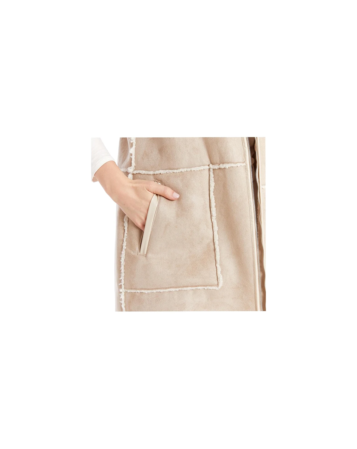 Add a faux shearling vest from FRYE to your fall seasons "must" haves. Made of faux shearling with faux sherpa lining - perfect for the crisp temperatures. For extra warmth, pull up the attached hood and dig your hands into the cozy warm faux sherpa front pockets.