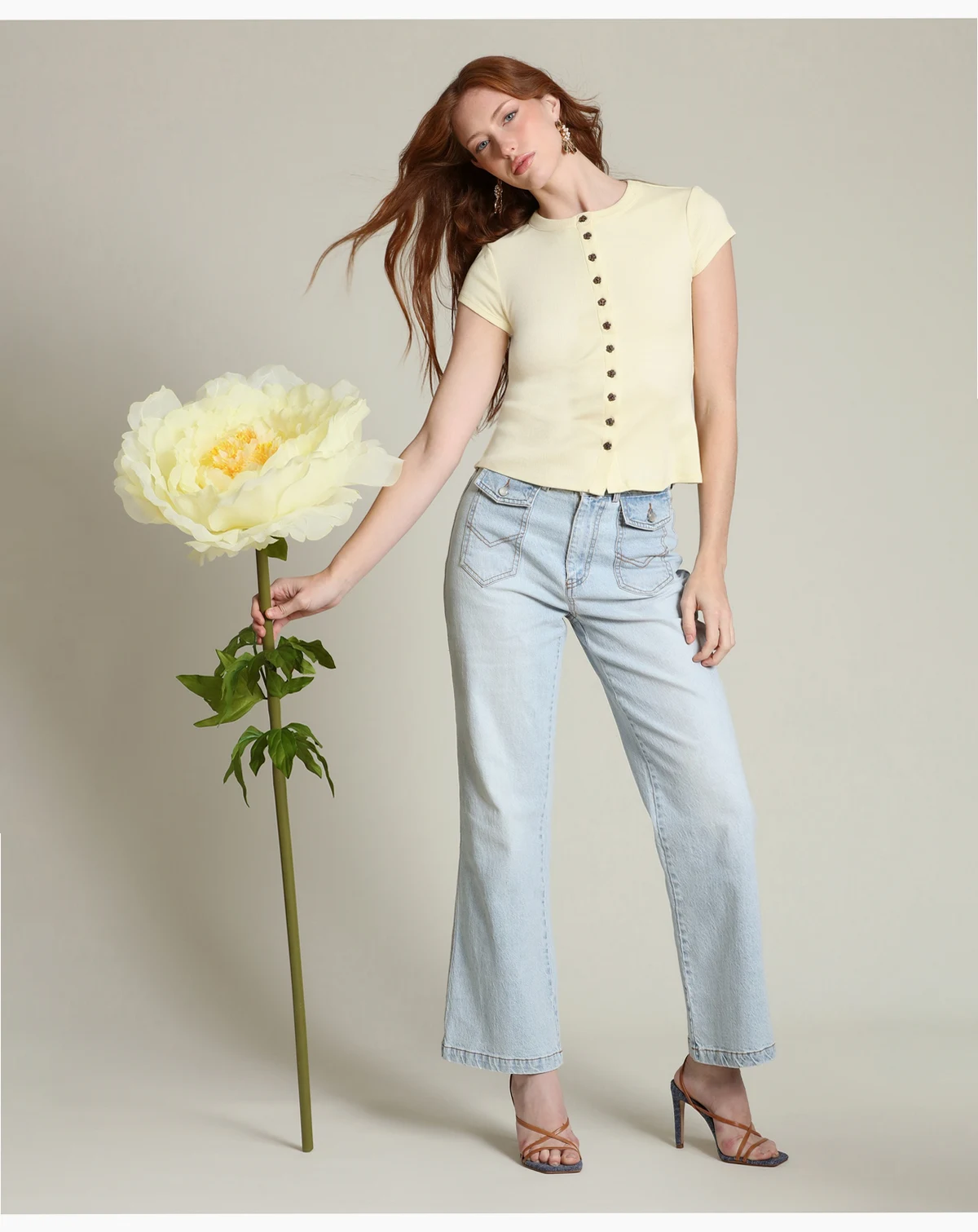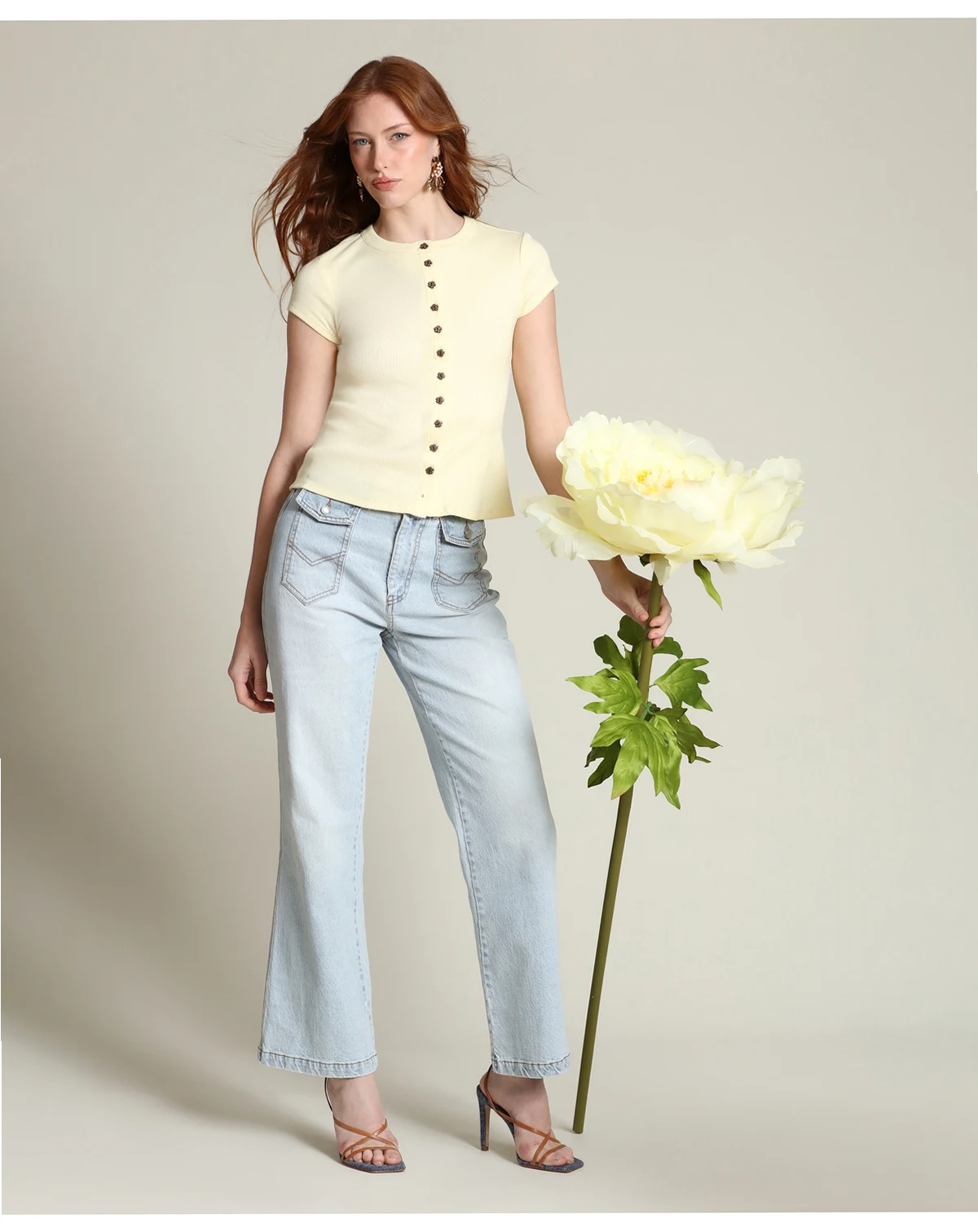 buttoned patterned jeans