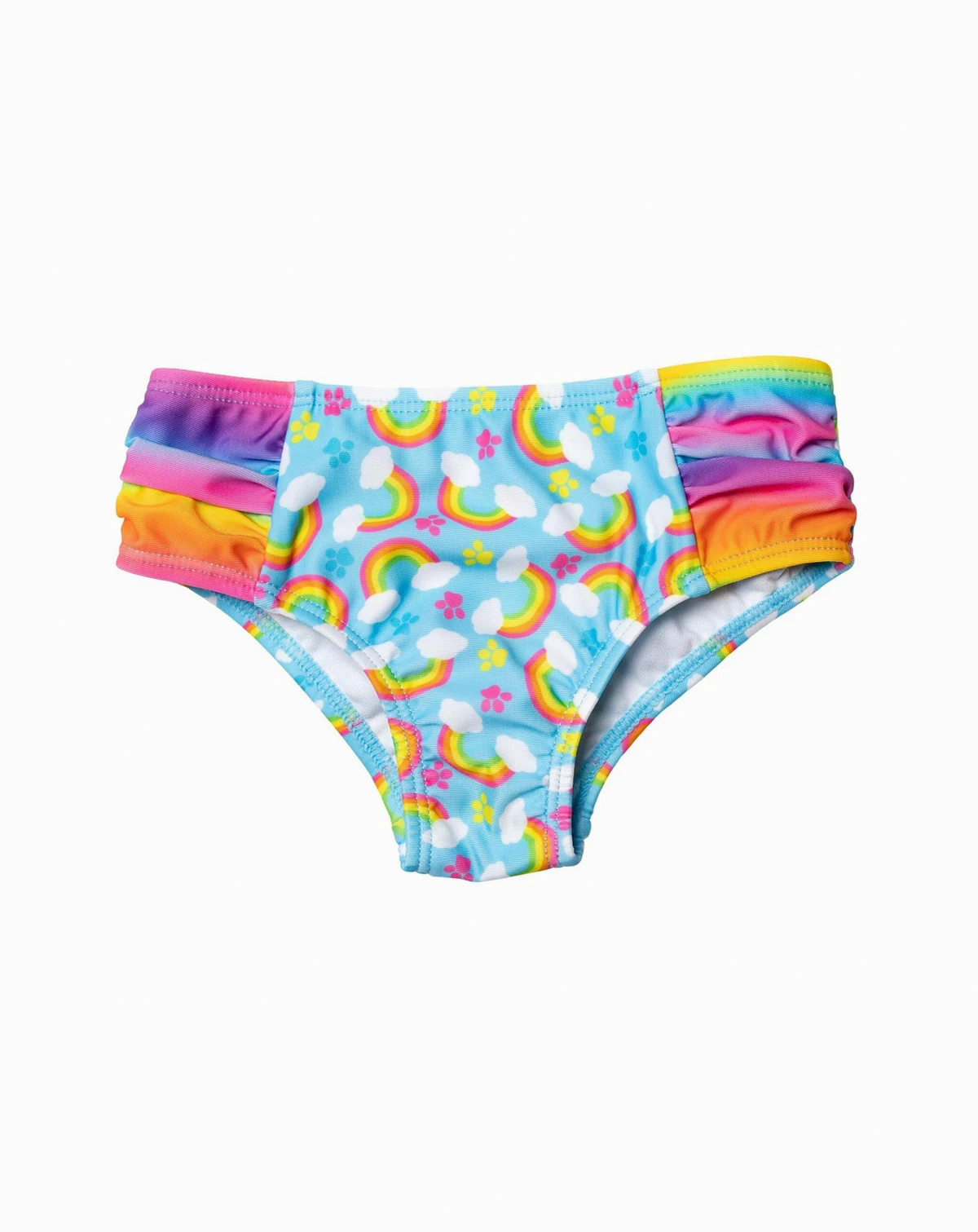 Contrast raglan sleeves Awesome sublimation print design UPF 50+ material for UVB and UVA protection and worry-free sun time 4 way stretch fabric for comfort and long-lasting fit Ruched sides on swim bottoms Knot tie bottom; Durable children s swimsuit set with a comfortable fit and easy-to-dress design youth fashion swimwear made from a quick-drying bathing suit material that protects your child from the sun and is safe on skin