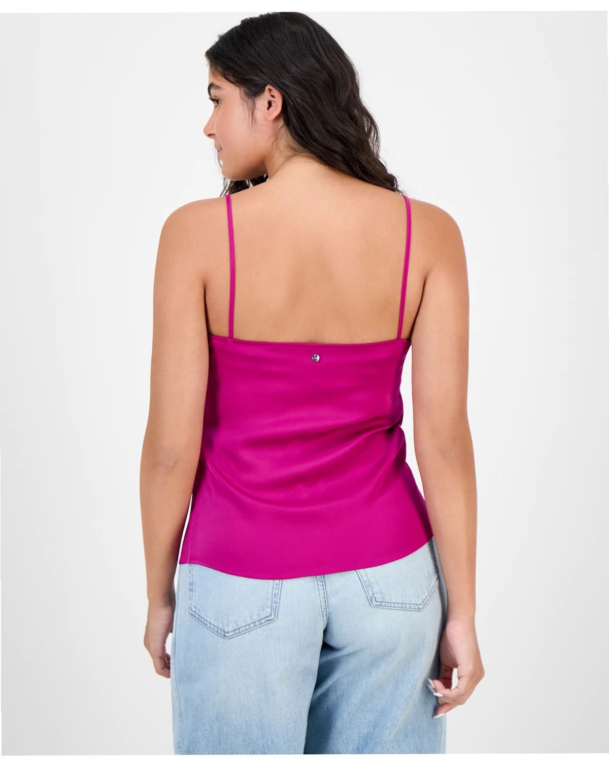 BOSS Orange offers style in spades with this luxe satin camisole designed with gauzy mesh around the neckline.