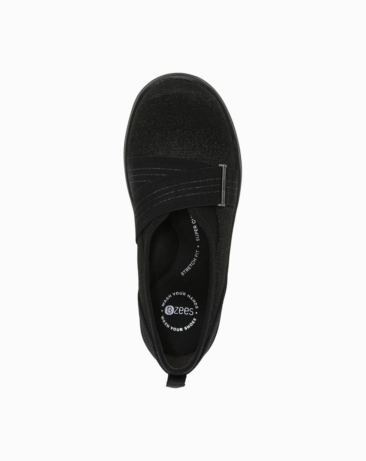 Never settle for less than the utmost comfort and style in a sporty new version of this essential slip-on. Stretch fabric upper. Slip-on fit with back pull tab. Sporty stretch gore strap with metallic band detail. Algae-based foam layer under the insole. BZEES Cloud Technology: Welcome to Cloud 9. Dynamic Stretch Uppers: Free and natural movement is finally here. Designed so you'll feel weightless, energized and free. Odor Control technology. Free Foam Footbeds: Your feet need beds just as much as the rest of your body does. SoCush Memory Foam arch support. Air Infused Outsoles: You'll feel like you're walking on, well, you get the idea. 1-inch sole. Machine Washable: Toss 'em in the wash and you're good to go.