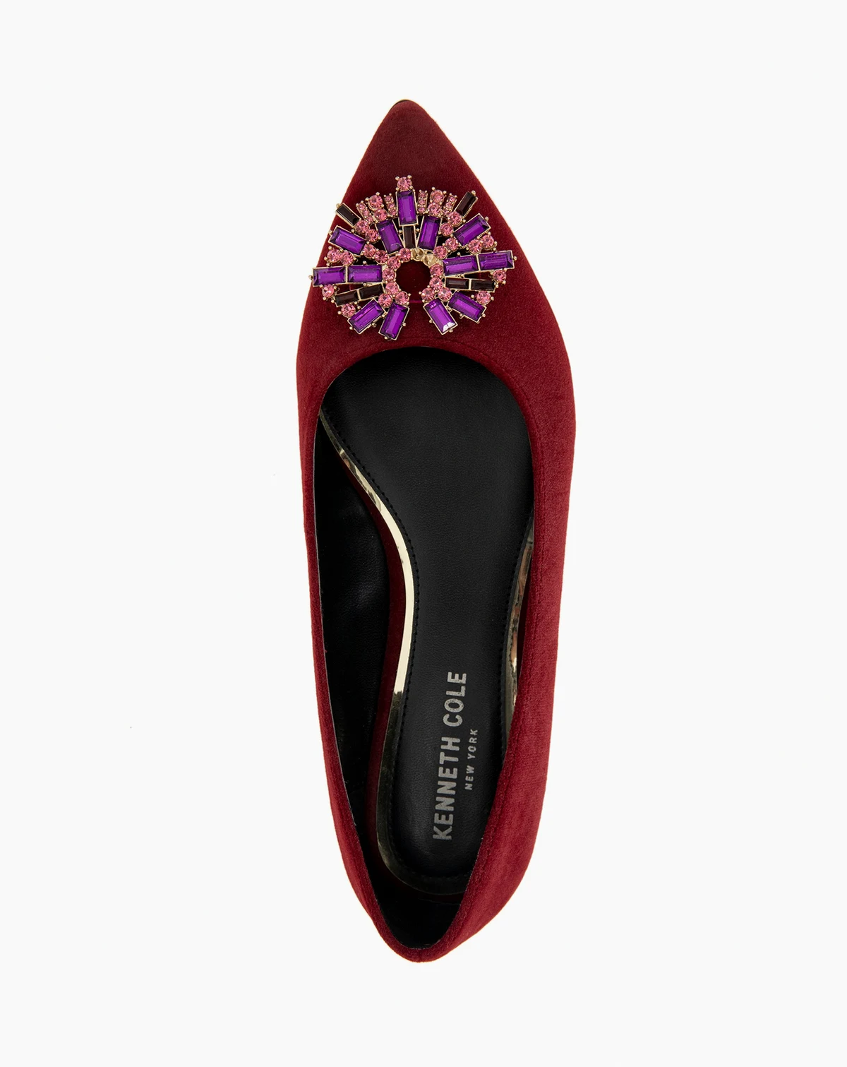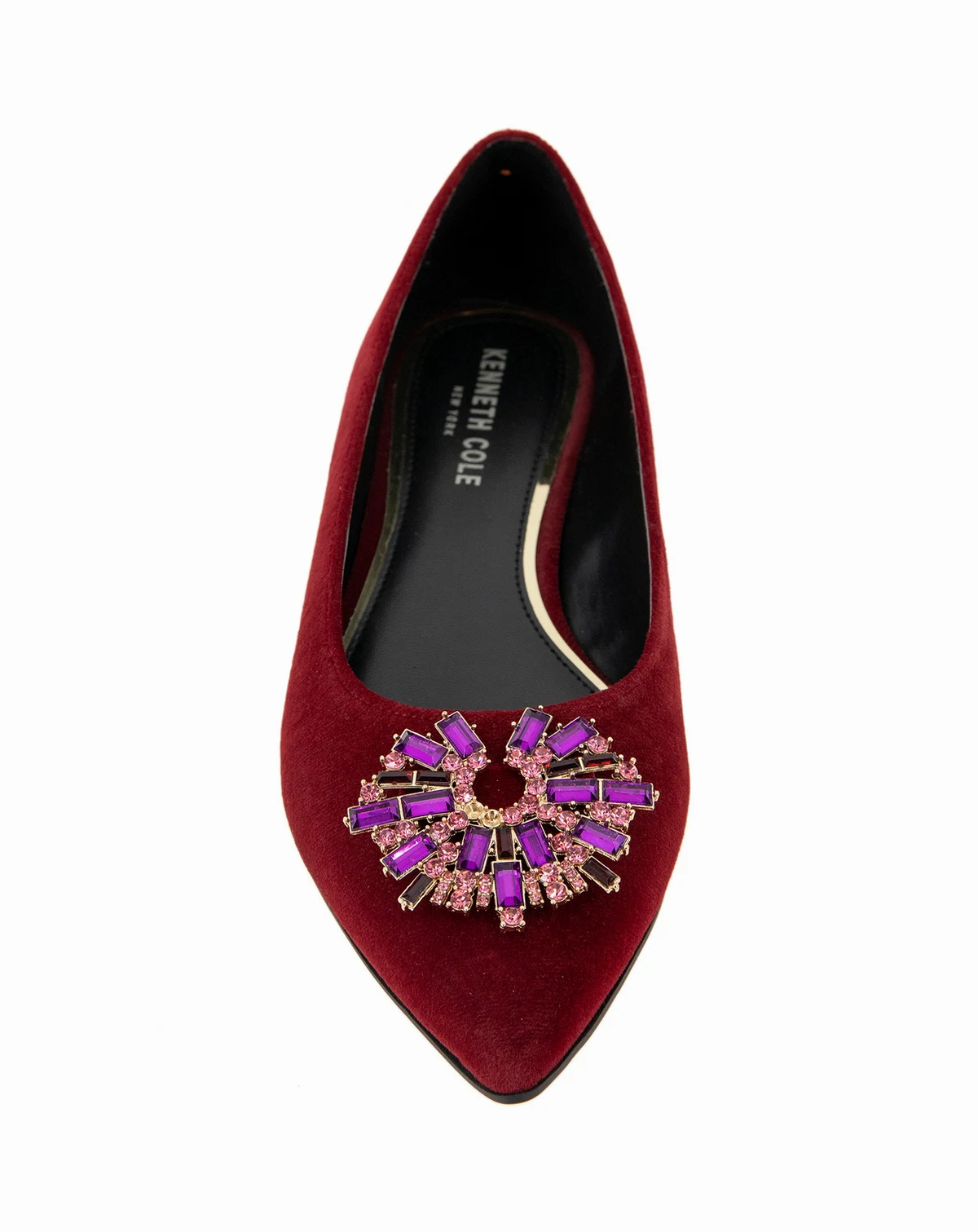 A jewel-embellished ornament adds timeless glamour to the vamp of the Kenneth Cole New York Gaya Starburst luxe pointed toe flat.