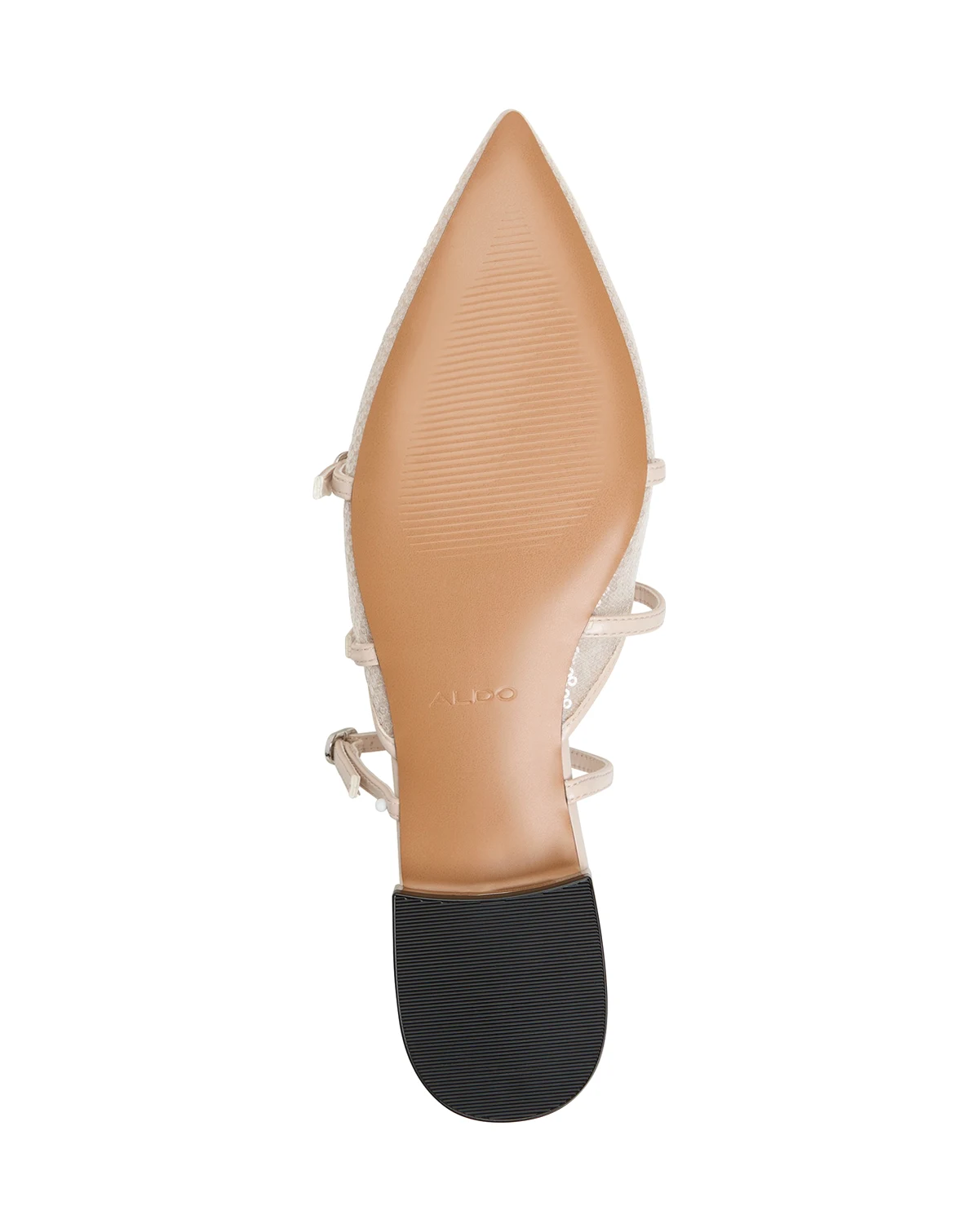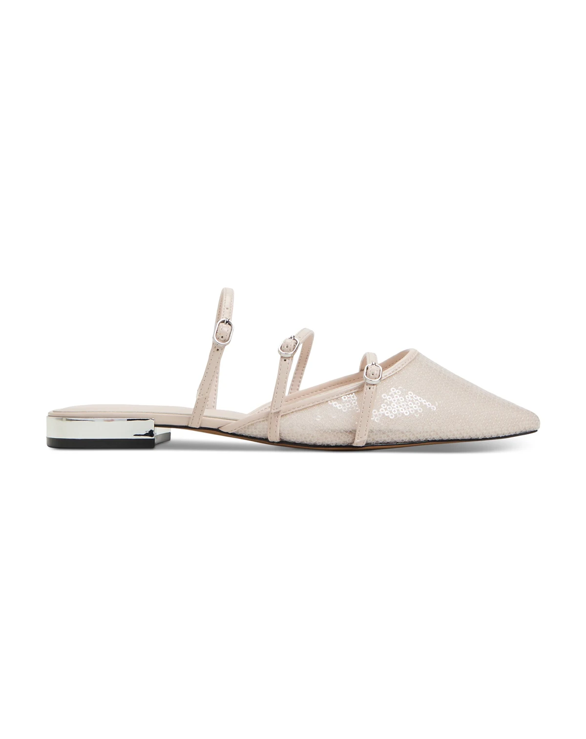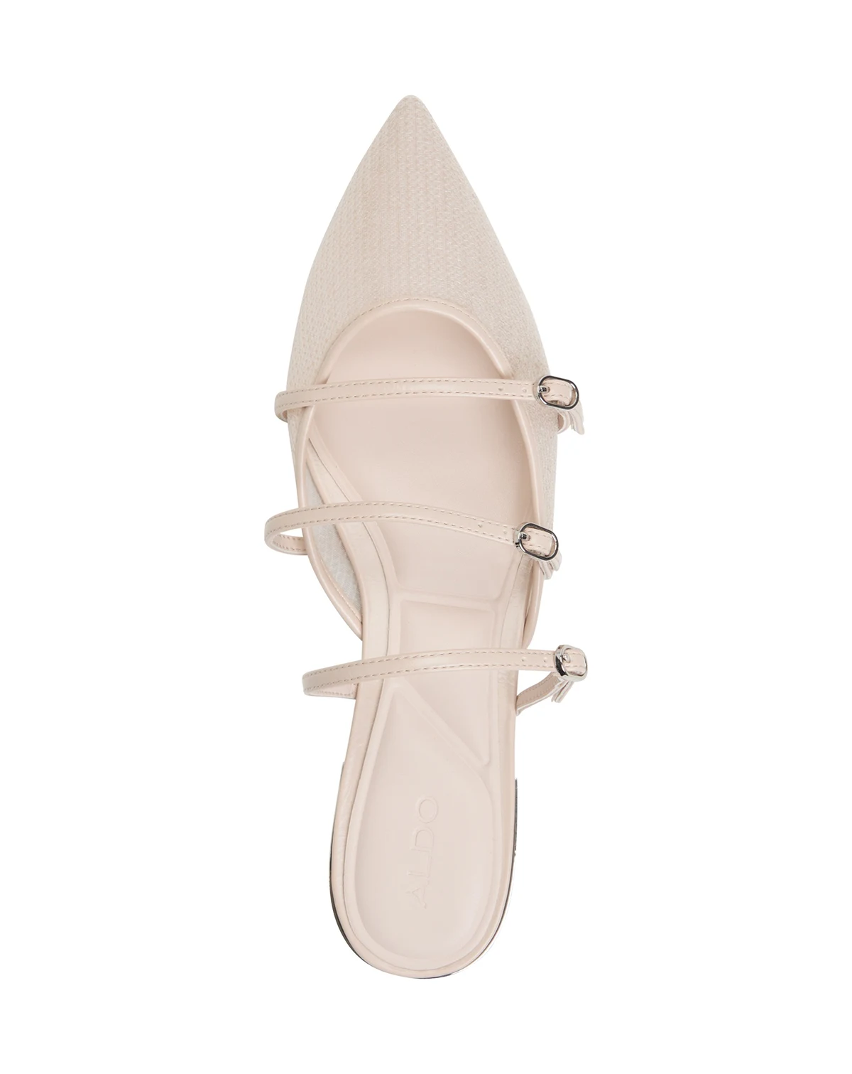 A trio of slender buckled straps add Mary Jane attitude to the simple mule silhouette of the Aspynn flats from ALDO.