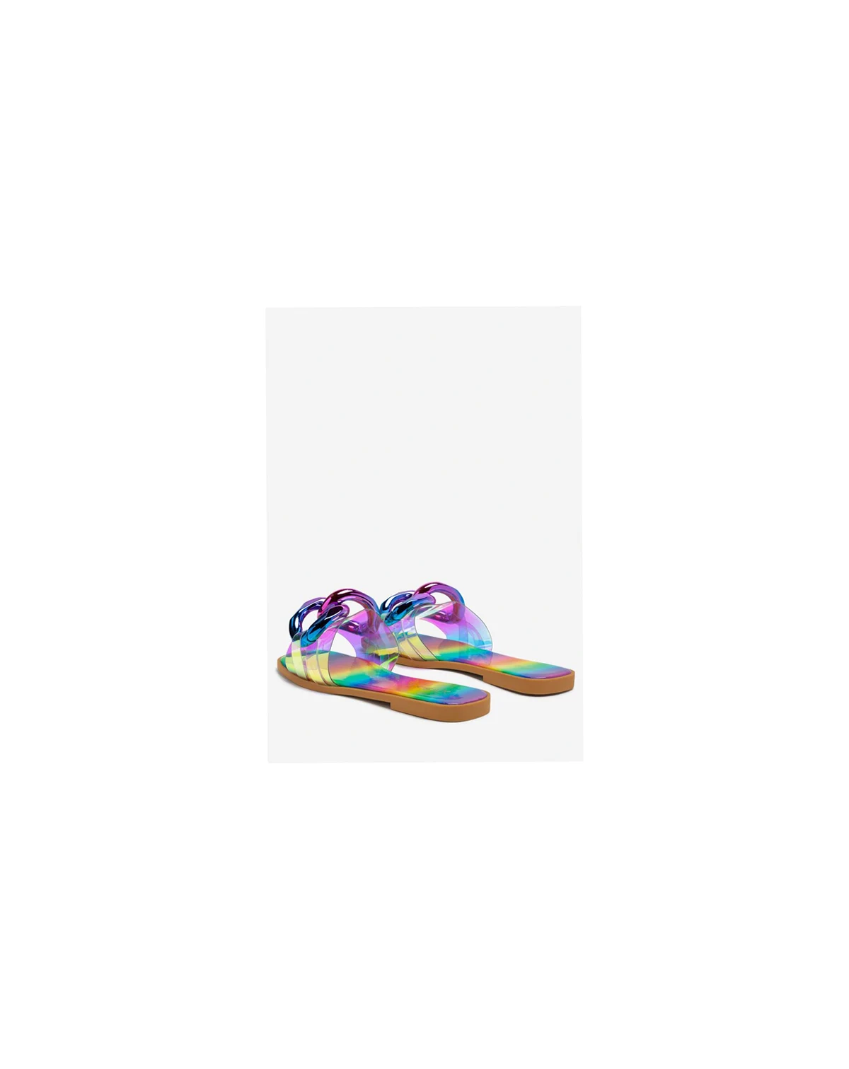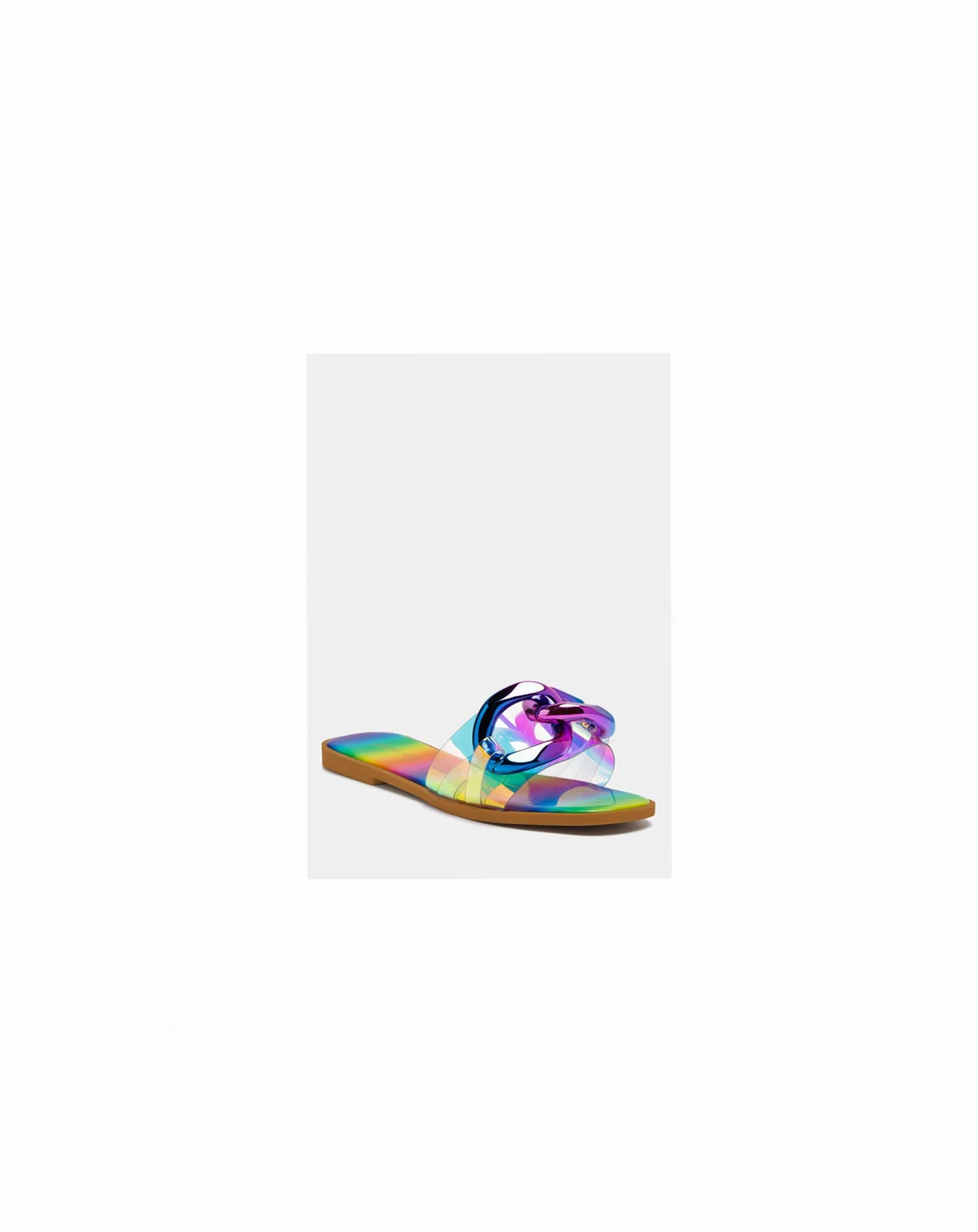 Chain Detail Clear Strap Flats in Square Toe. Adds look to feet, casual all day slides.