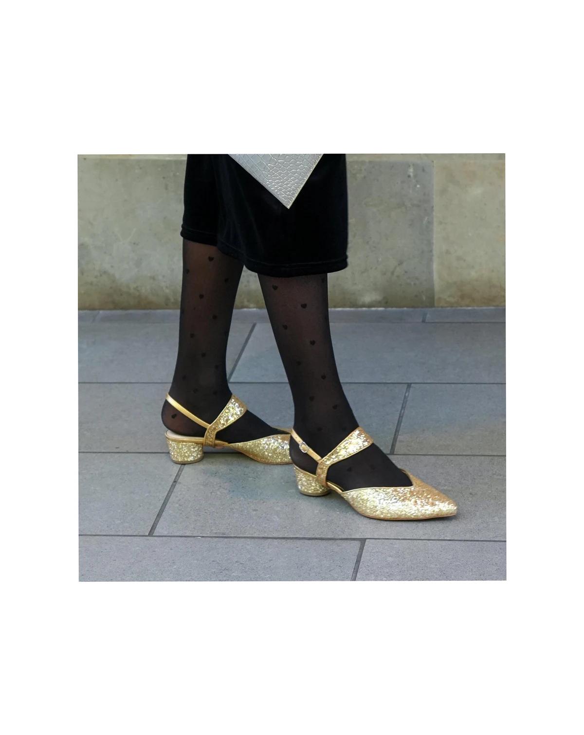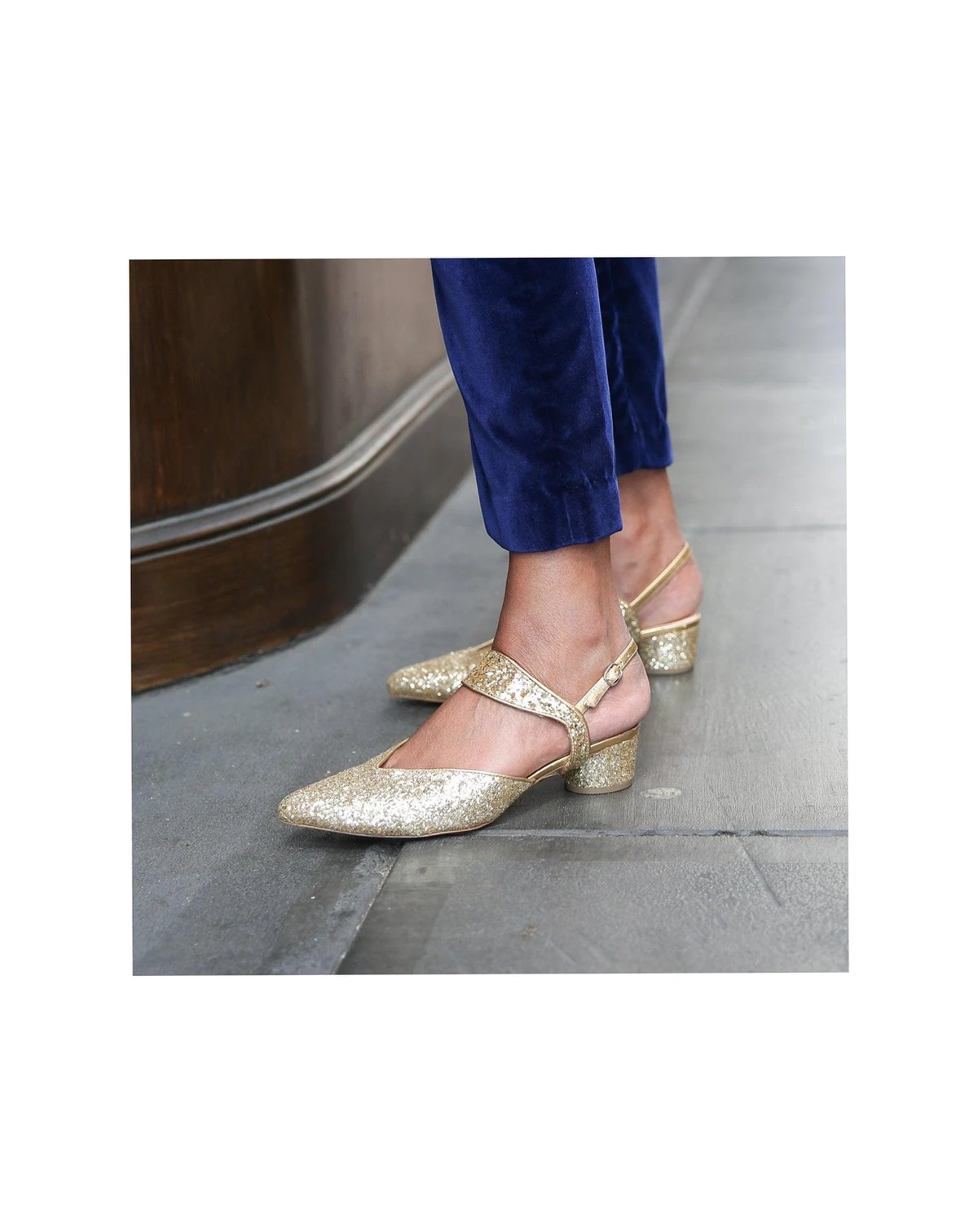 Whether it's a work event or a wedding, these glittering gold slides are the most comfortable party shoes. The design may feel snug at first but softens over time. If you re between sizes, we recommend sizing up for the best fit. Customize this shoe by removing the detachable Elsie strap for any other Alterre strap (sold separately).