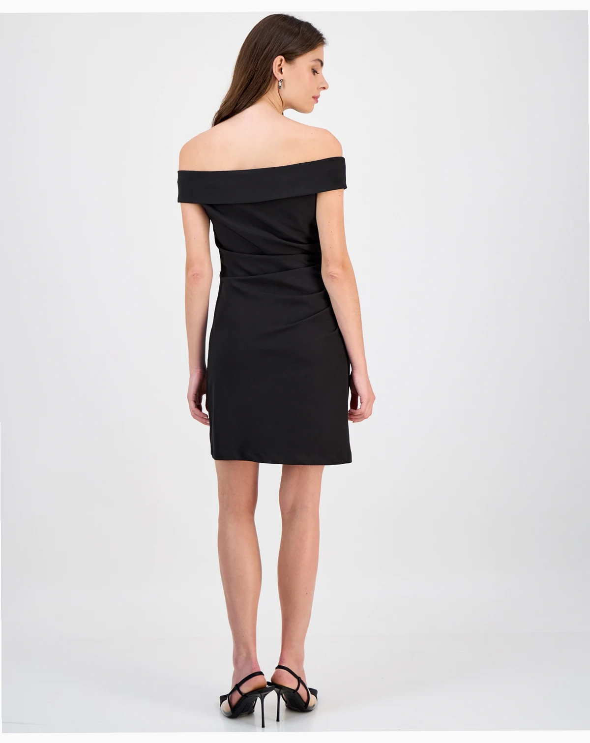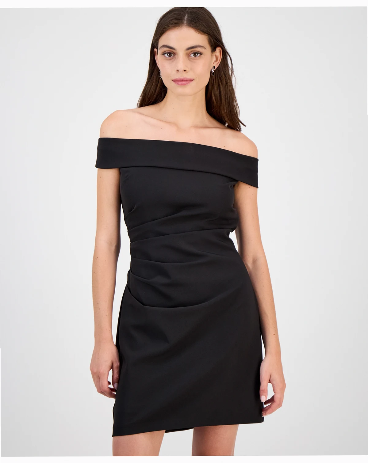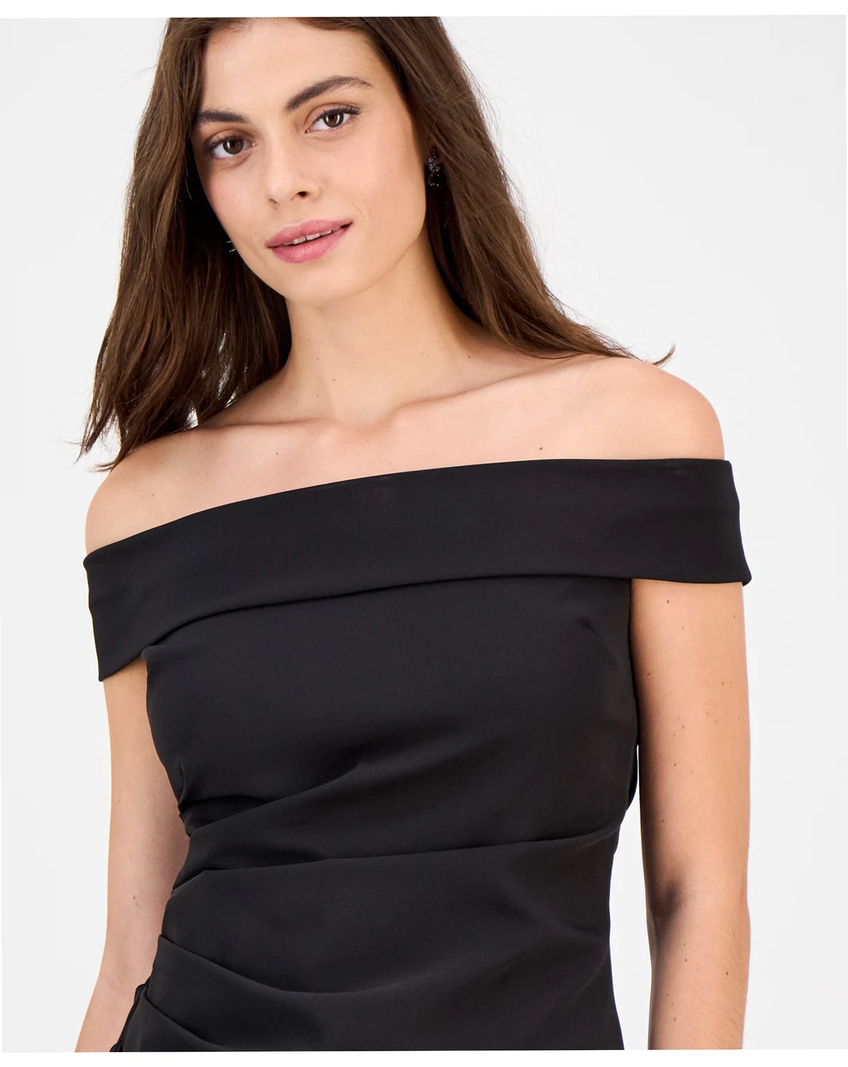 Styled from sophisticated cady fabric, Sam Edelman redefines subtle elegance with this chic off-the-shoulder dress.