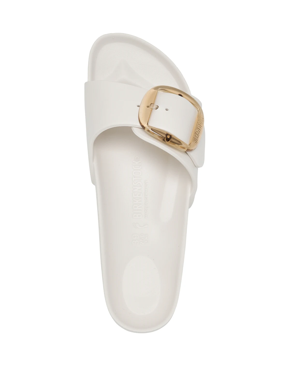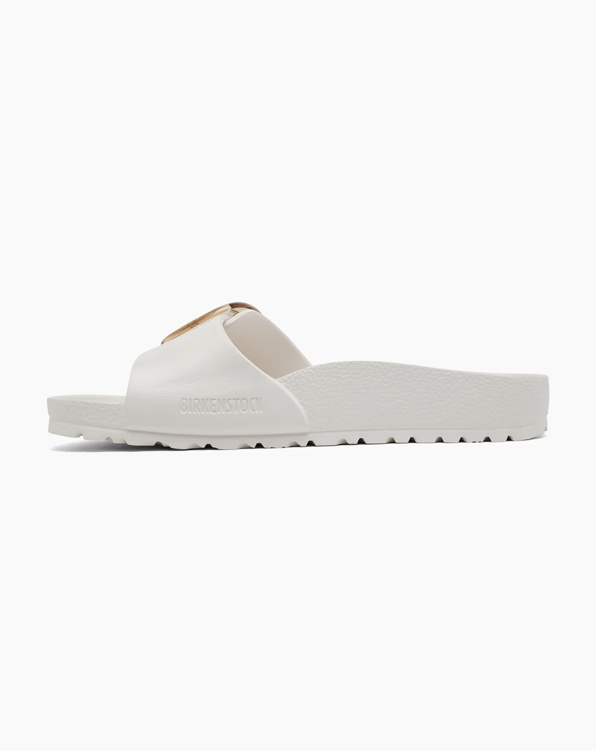 The signature Madrid silhouette gets magnified for these Birkenstock Women's Madrid Big Buckle EVA Sandals. Crafted from a water-resistant EVA material, its single-strap design features an anatomically shaped cork-latex footbed and an oversized, translucent tonal buckle closure for a bold composition that's big on comfort.