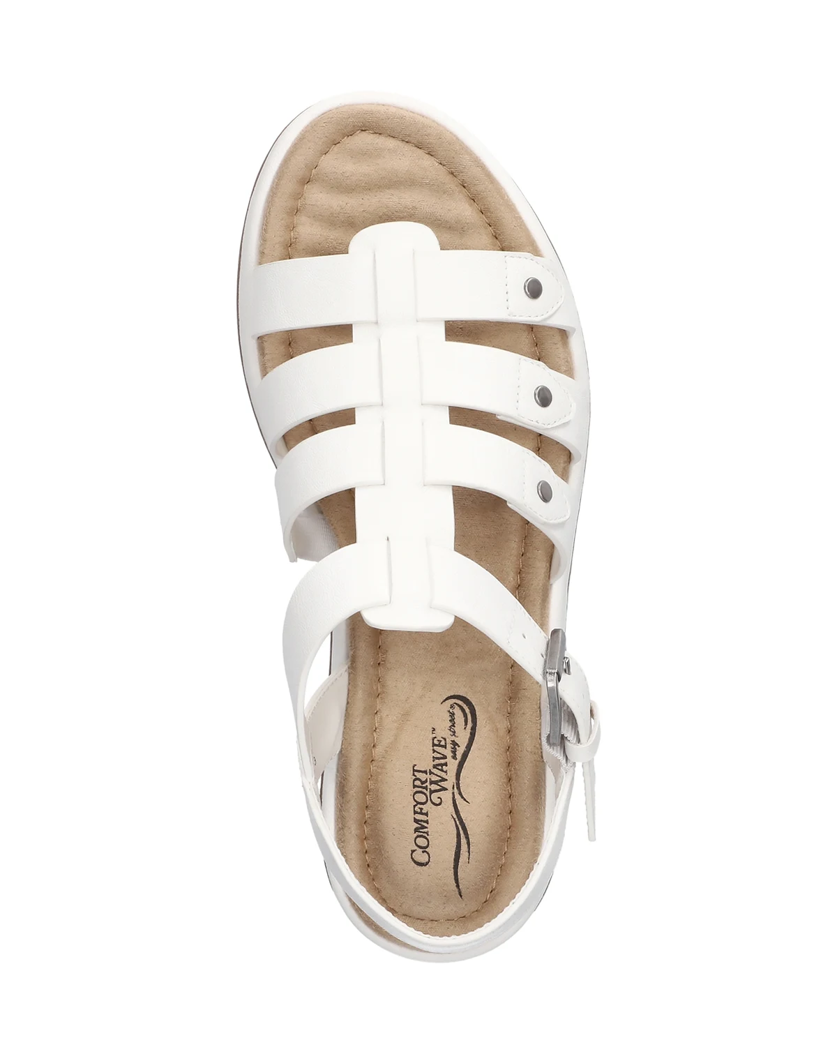 Discover ultimate comfort and style with the Chirp by Easy Street. This gladiator-inspired platform sandal is enhanced with the unique comfort wave foot bed. This low platform sandal is perfect for any summer occasion. Add a great comfort sandal to your spring wardrobe for all-day comfort.