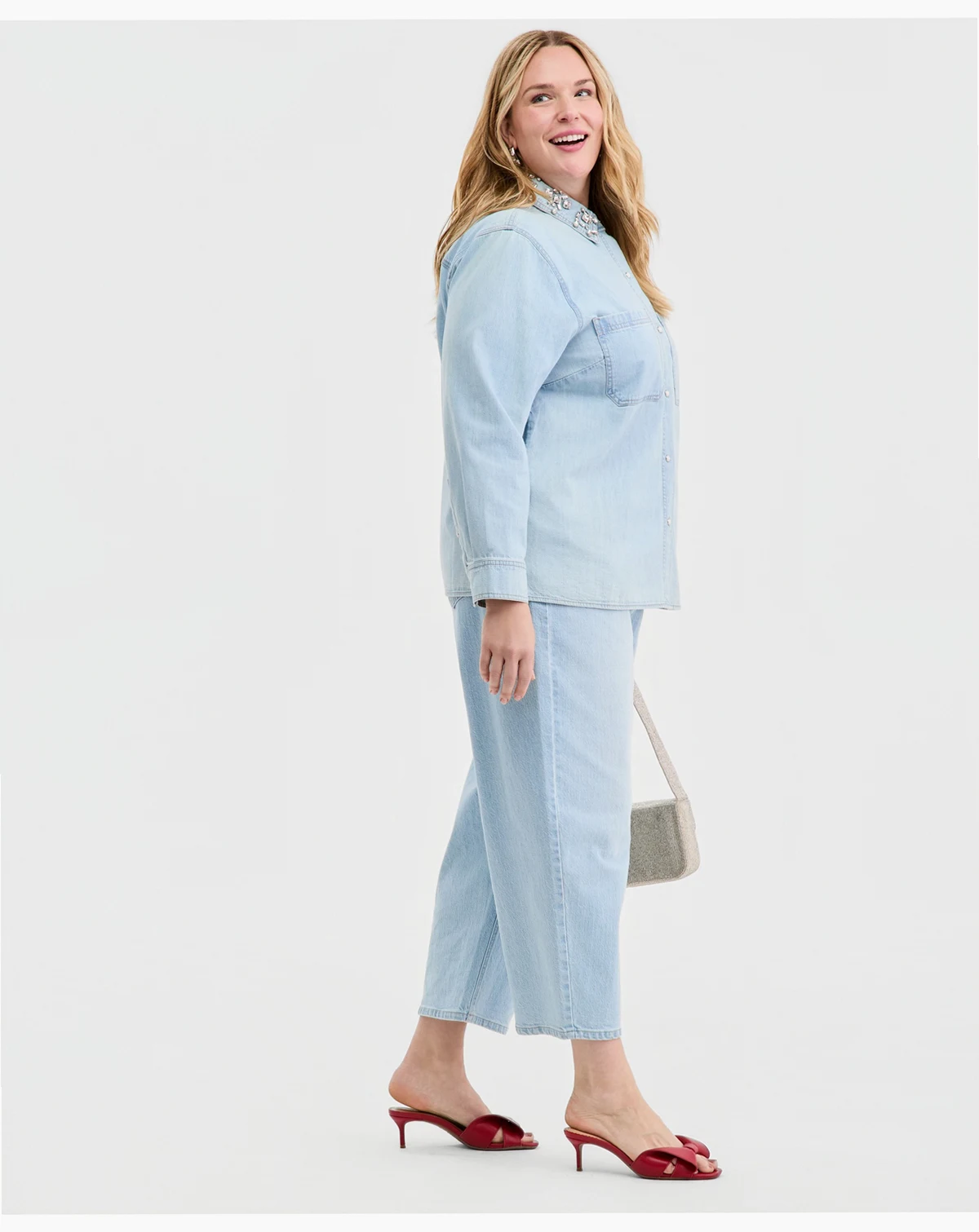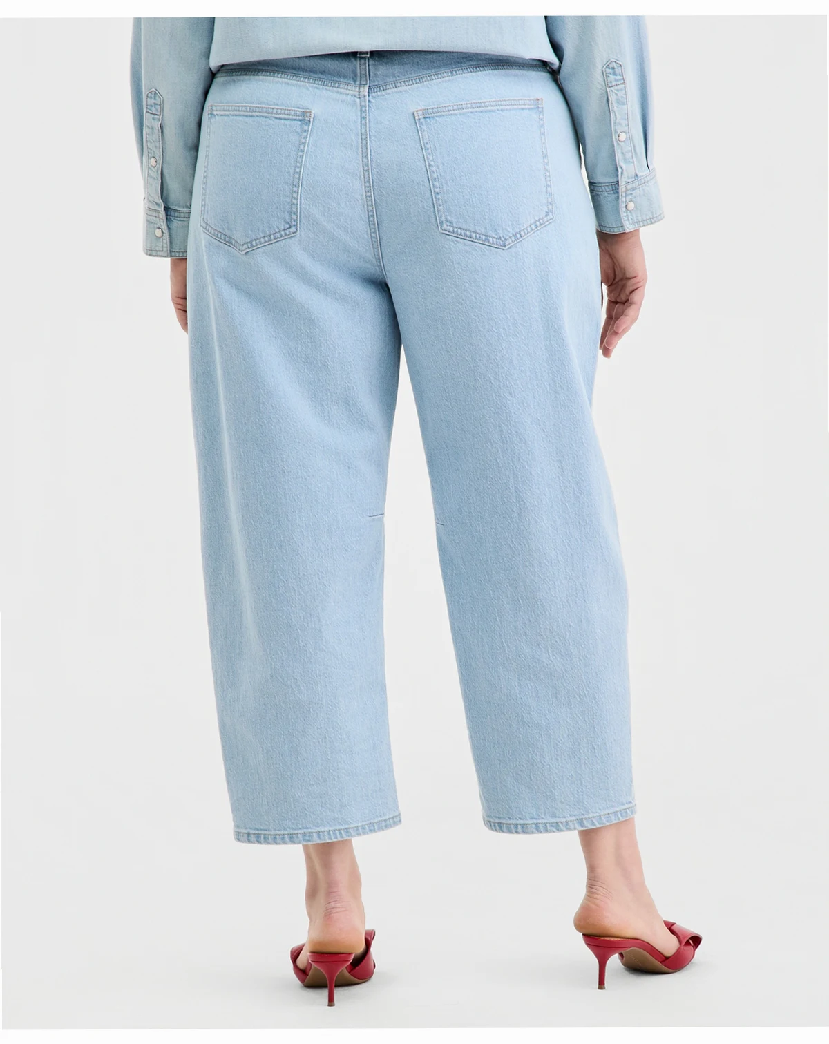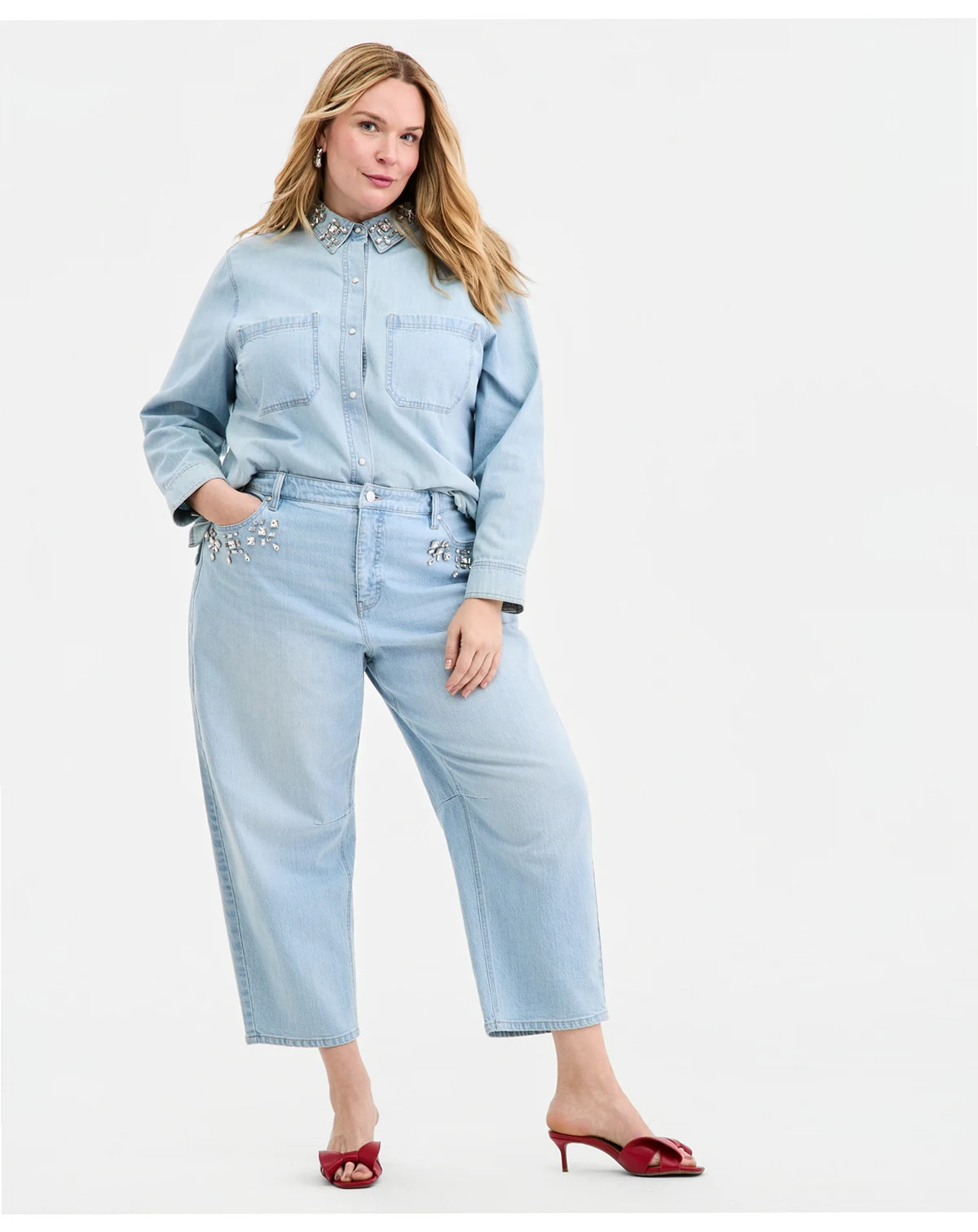 Sparkling embellished details highlight the cool-as-can-be barrel silhouette of our cropped, plus size jeans. ABOUT THE BRAND: On 34th was designed for and with women like you. Made for your body, your style, and your truth. As your wardrobe's BFF, these mix-and-match pieces work with everything in your closet.