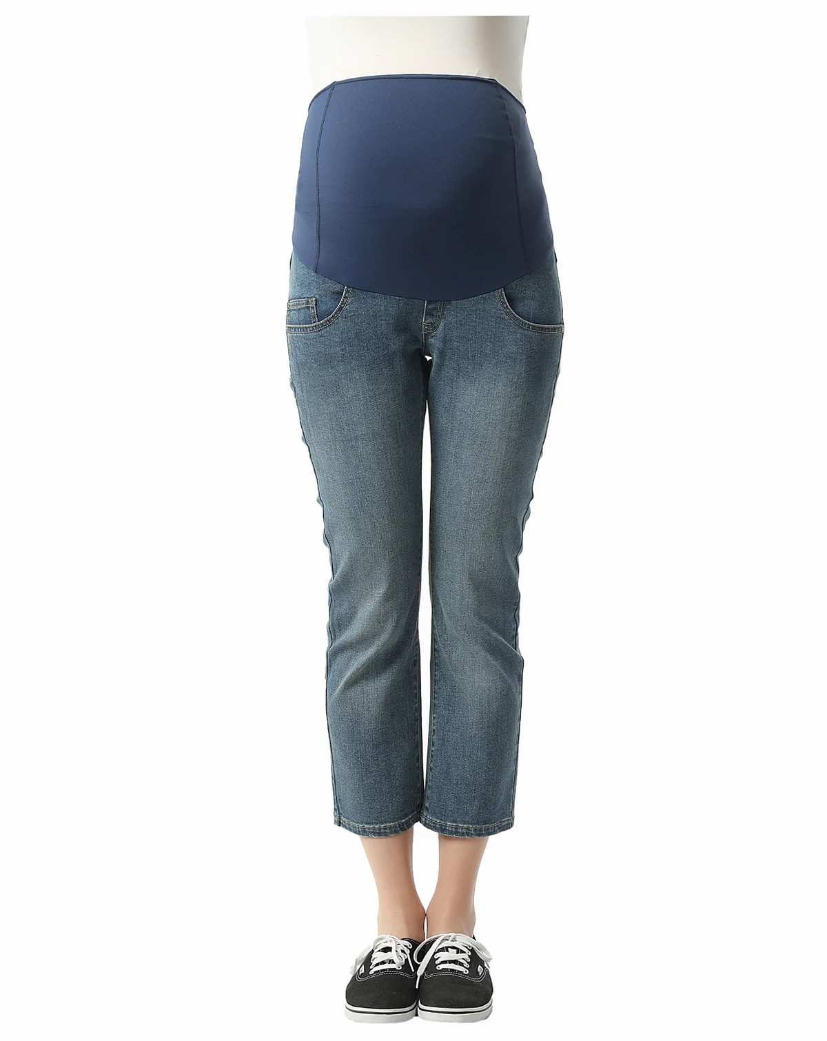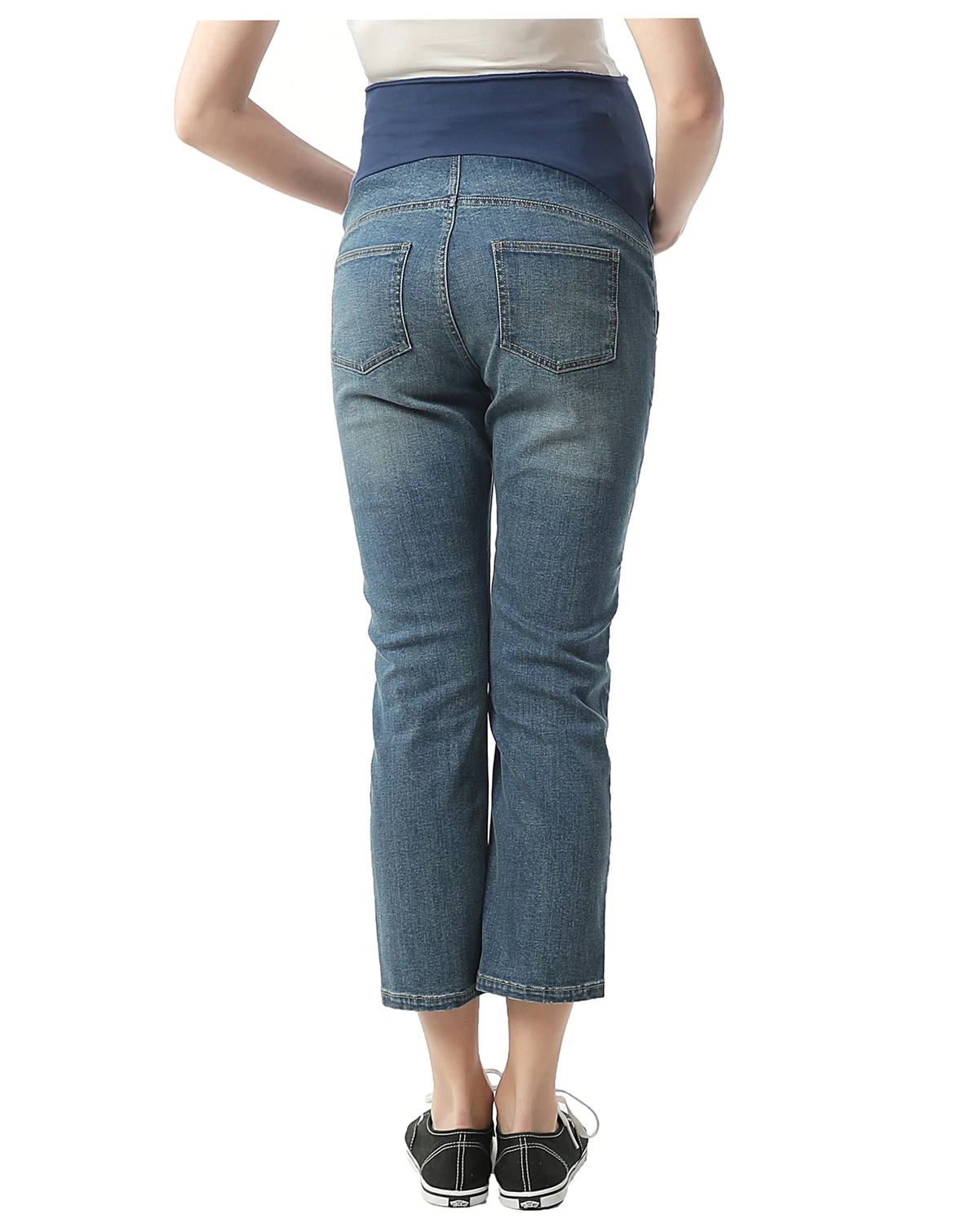 An elasticized waistband with contoured panels reaches high on your midriff to securely cradle your baby bump. Crafted from a super-soft, ultra-stretch denim, these Girlfriend Crops fit easy throug the hip and thigh.