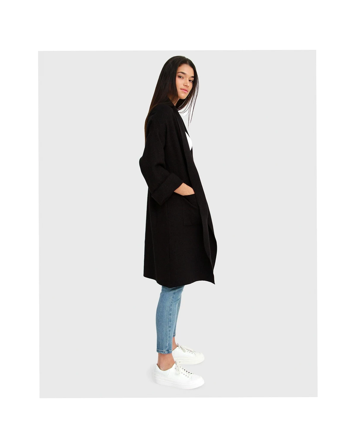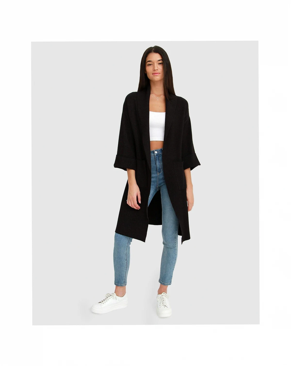 Fashion's latest mash up, we bring you the Hold The Line Coatigan, a cardigan so big that it can double as a coat. It's easy to throw on for cool summer nights or year round. Fold up the sleeves and enjoy the herringbone pattern over any casual summer look.