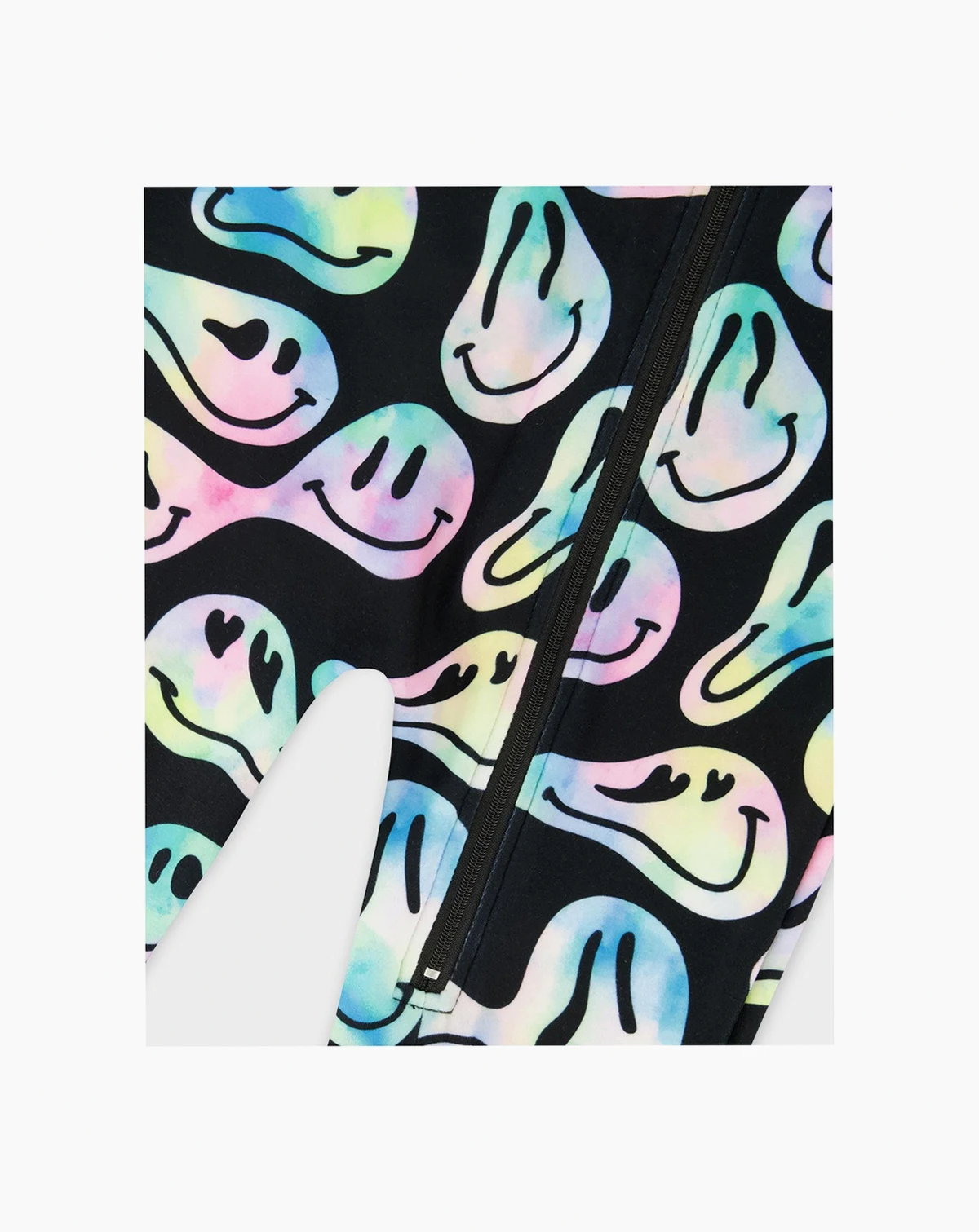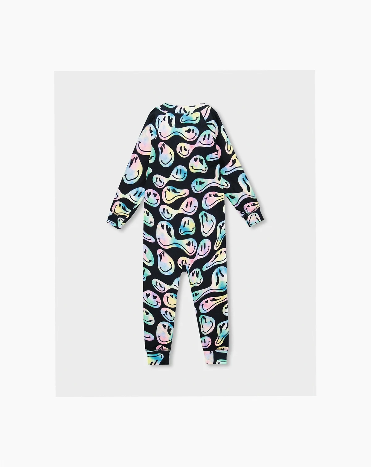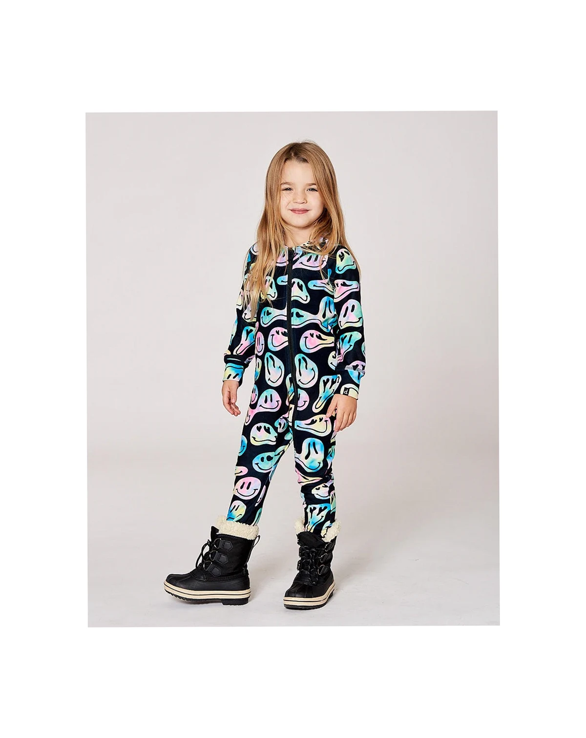 It's essential to be comfortable when wearing a snowsuit, so we've designed this one-piece base layer in super soft and thick brushed jersey to keep little ones warm yet able to move freely. Our thermal underwear jumpsuit features long raglan sleeves, a round neckline, an asymmetrical zipper closure, and an allover smiley face print.