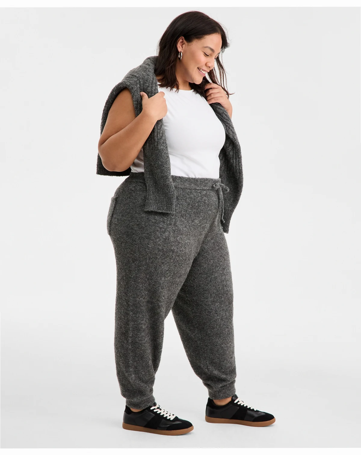 A soft and fluffy knit lends a snug and cozy feel to this trendy plus style by On 34th, complete with a drawstring waist so you can relax in full comfort. ABOUT THE BRAND: On 34th was designed for and with women like you. Made for your body, your style, and your truth. As your wardrobe's BFF, these mix-and-match pieces work with everything in your closet.
