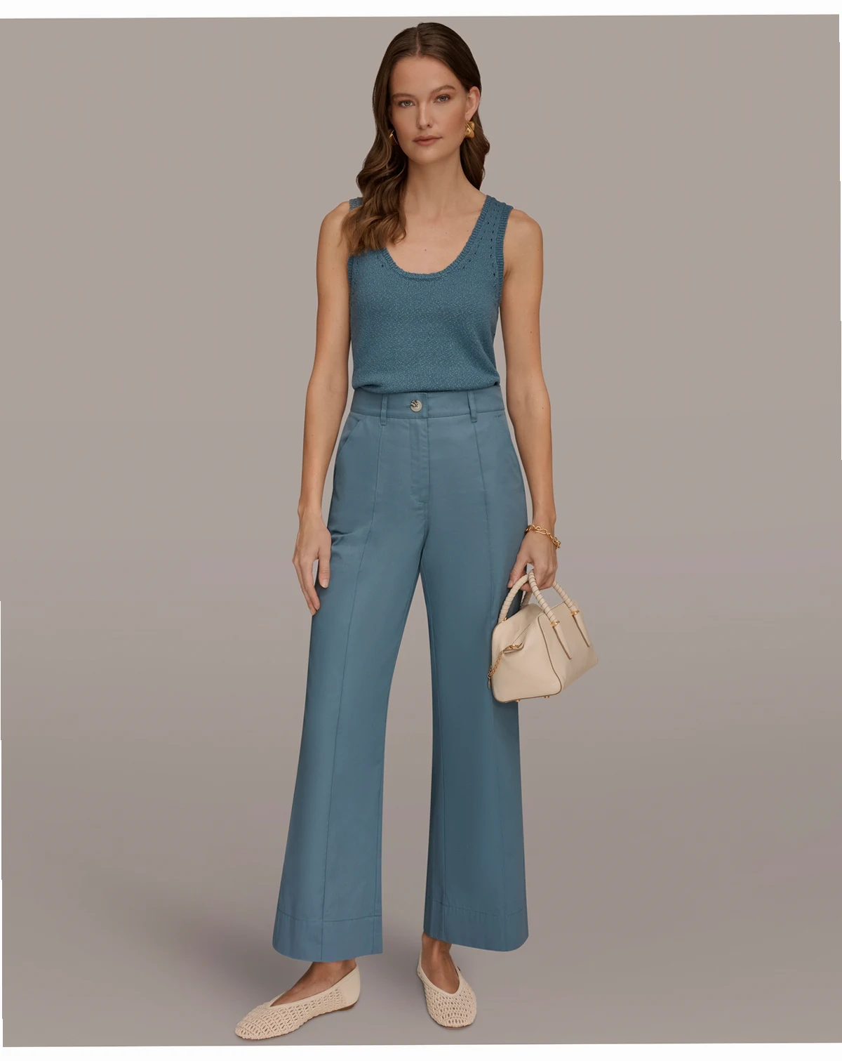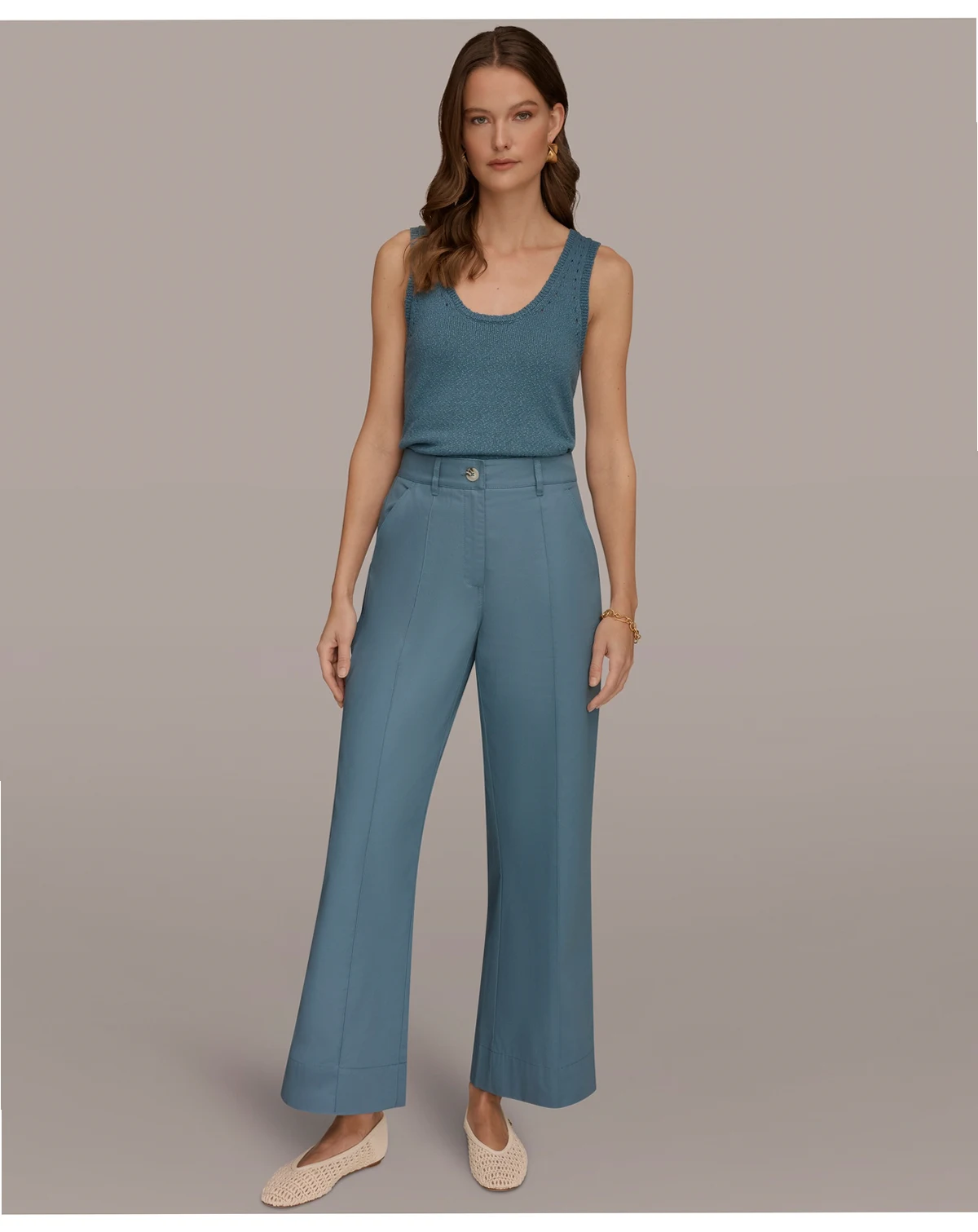 Achieve a polished look with the clean lines and pintuck details of these Donna Karan Weekend trousers. Their wide-leg silhouette offers a relaxed yet refined aesthetic.