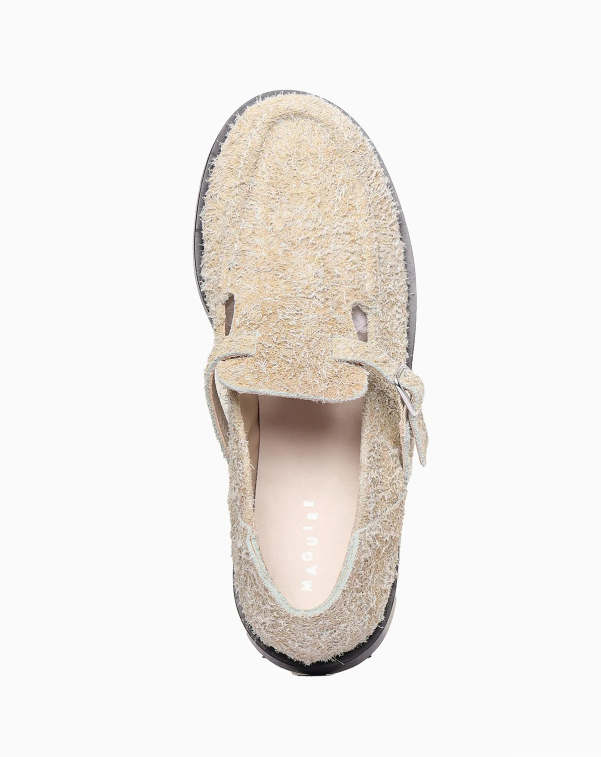 Handmade in Elche, Spain. This sleek and form-fitting Mary Jane reminds us of a childhood blankie. Featuring a fuzzy texture, a square adjustable buckle, and a rounded almond toe — they're made to walk through Dreamland.