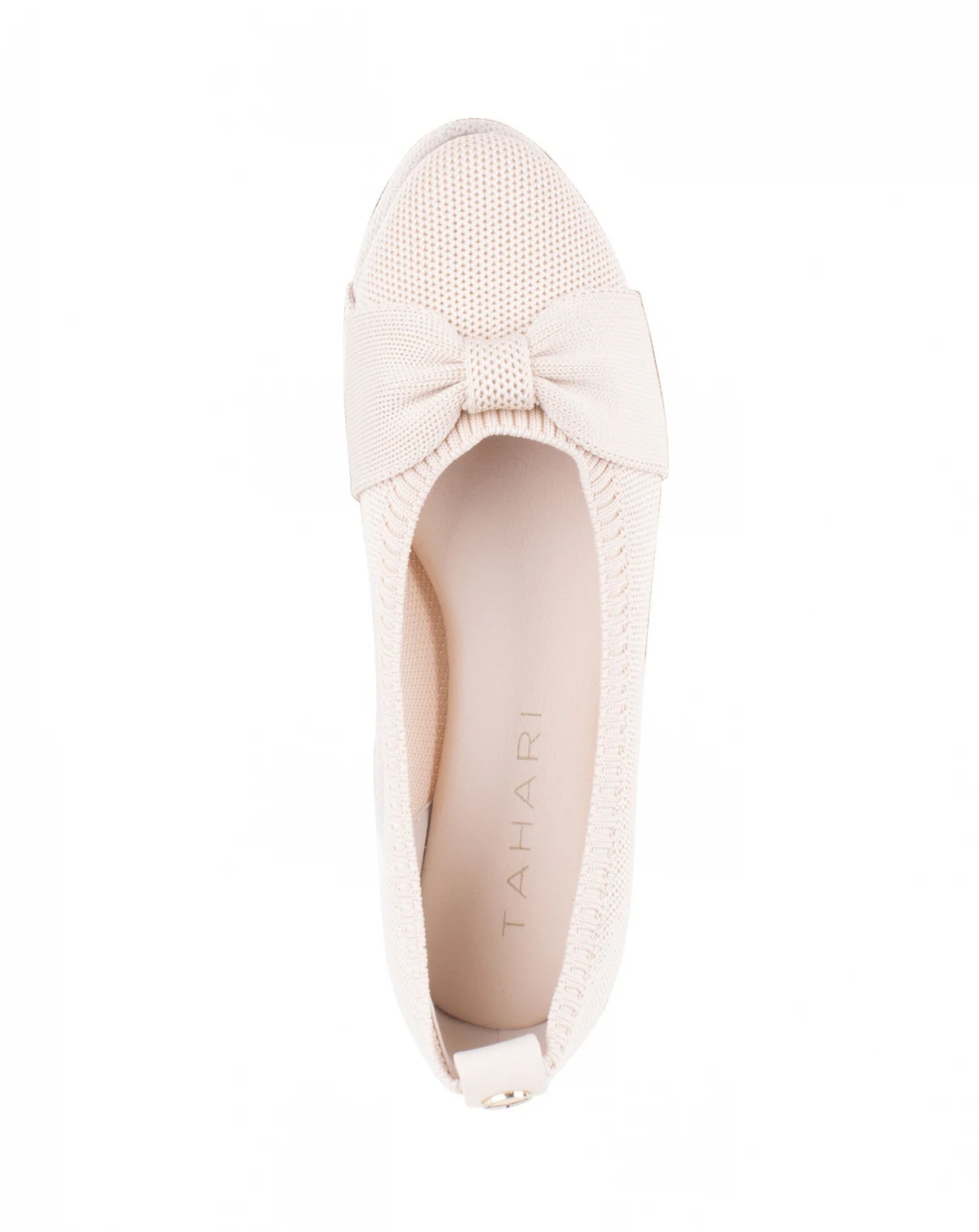 Tahari Women's Manchester slip on ballet flat with breathable knit upper and bow knot detail. Sophisticated and stylish design for all day wear and support.