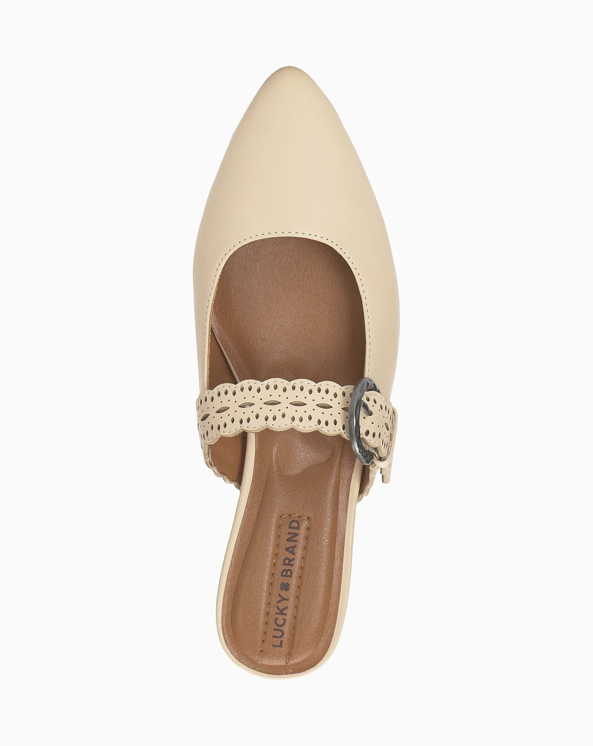 Buckled straps with eyelet detailing accent easy slip-on savvy in the Nicona flats from Lucky Brand.
