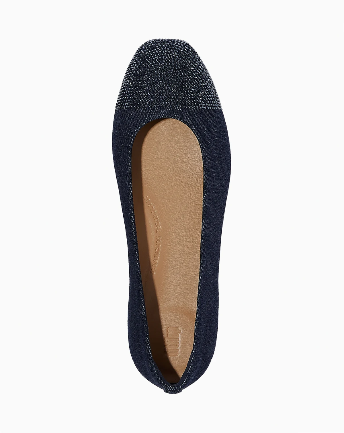 Add contemporary cool to your wardrobe with these FitFlop denim ballet flats featuring a crystal cap-toe. Sparkling crystal accents enhance their modern, stylish look.