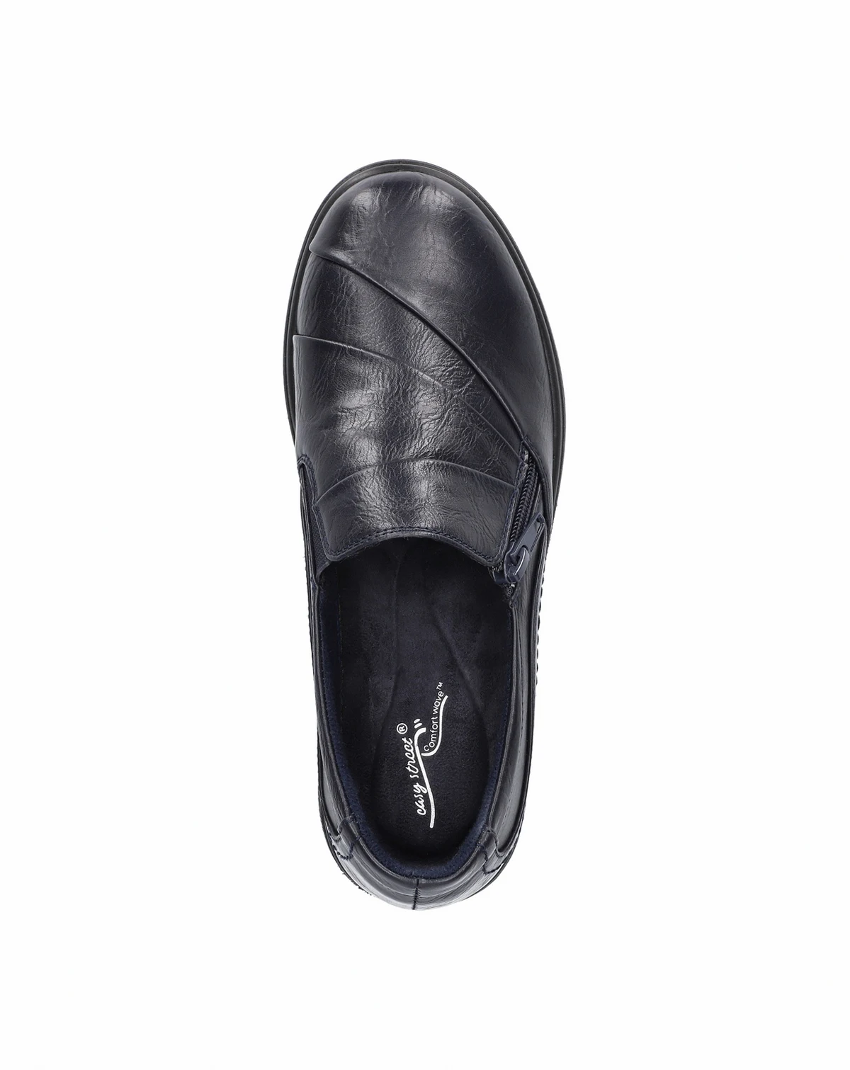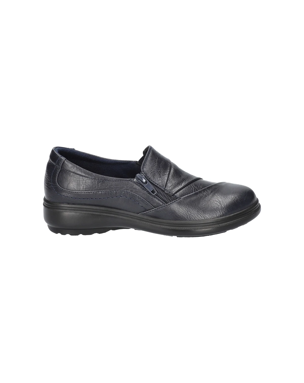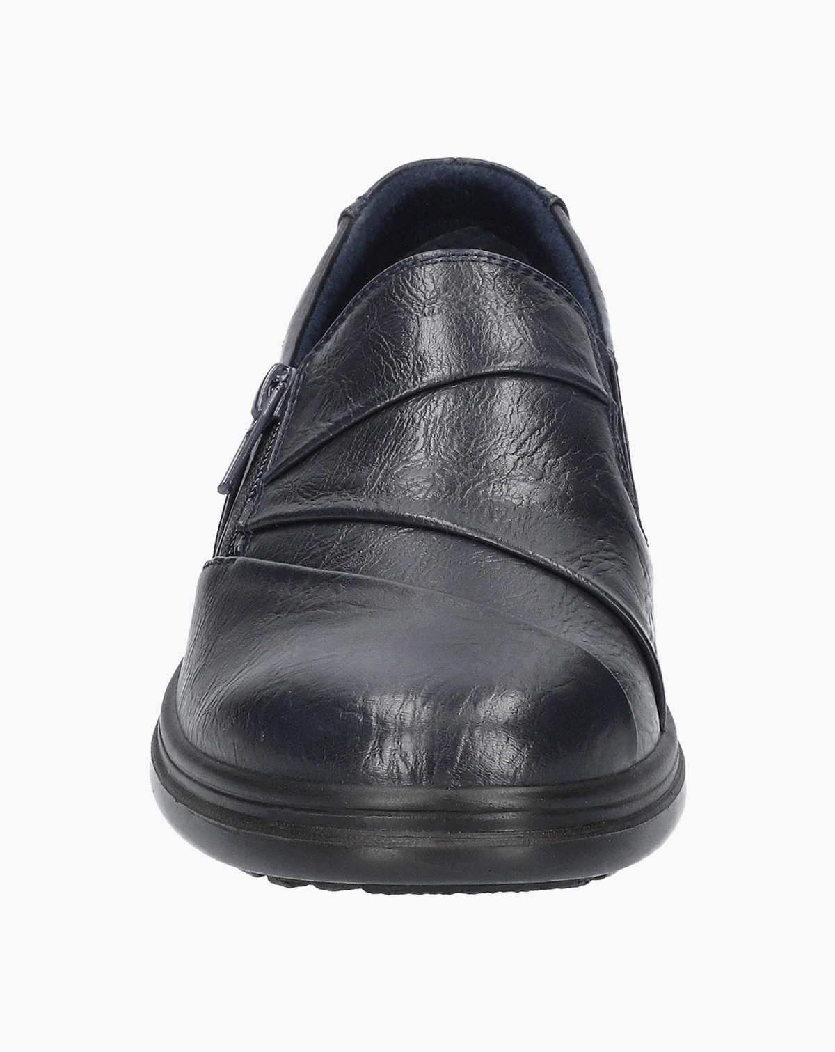 The Kimi by Easy Street is an everyday casual flat that is designed to assure all day comfort. Featuring a super flexible and lightweight outsole. The versatile upper, offers a contemporary pleated detailing and functional side zipper for easy on, off. Padded heel-to-toe removable insole.