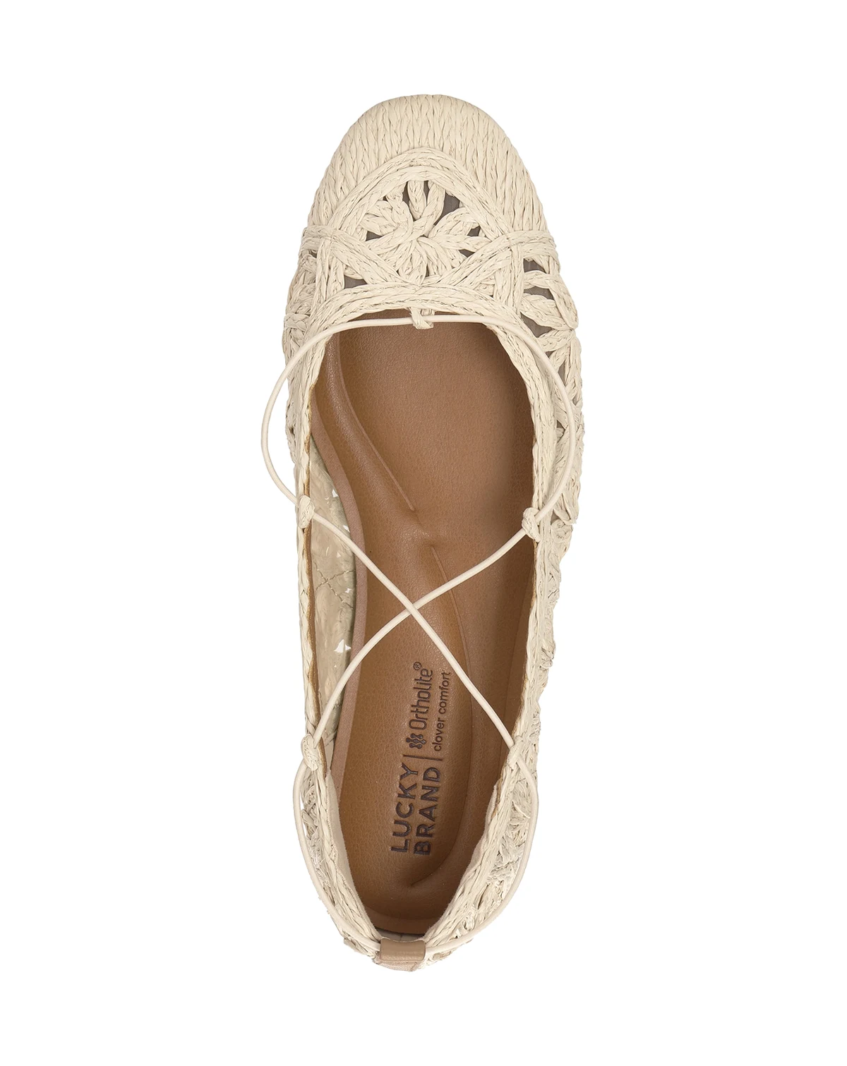 Finish warm-weather looks with timeless simplicity in these slip-on ballet flats from Lucky Brand, styled with almond toes and a clean profile. Raffia uppers keep the flats lightweight and breezy.
