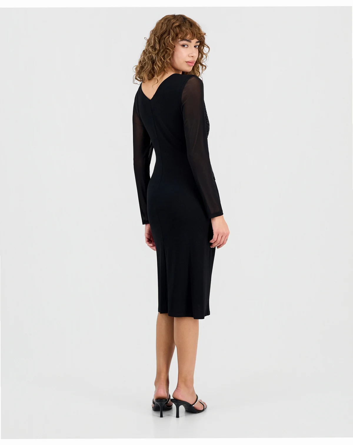 Shell and sleeves: 96% polyester, 4% spandex; lining: 100% Polyester; IMPORTANT NOTE: This item arrives with a return tag attached and instructions for removal. Once the tag is removed from the dress, this item cannot be returned.