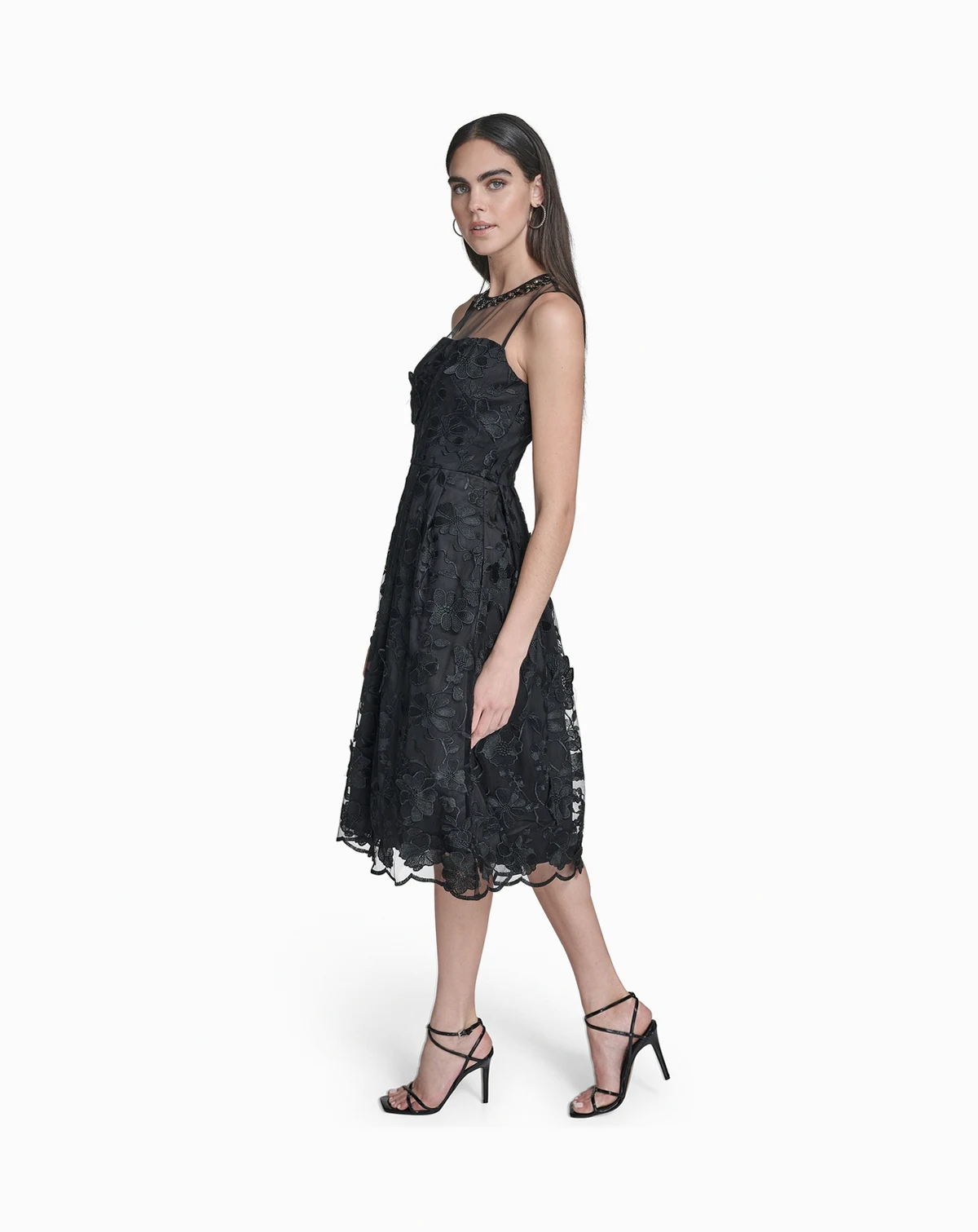 Step into sophistication with this Eliza J Women's Midi Dress, a smart choice for a variety of occasions. The timeless crew neck of this illusion dress ensures utmost comfort.