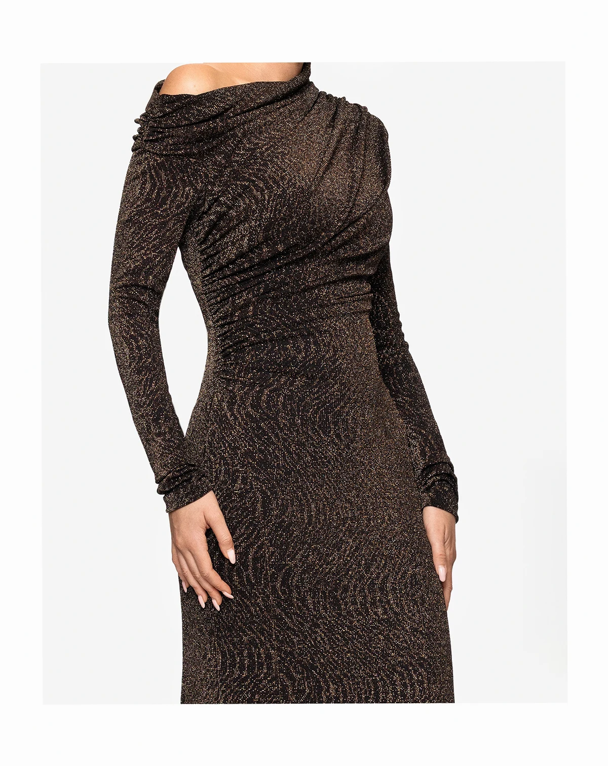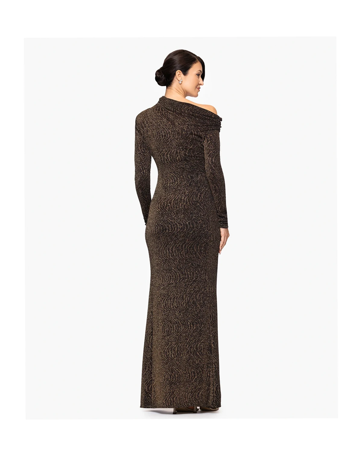 Make a dramatic entrance in this Betsy & Adam long dress, featuring a floor-length silhouette. The side zipper closure ensures a smooth, elegant fit for formal events.