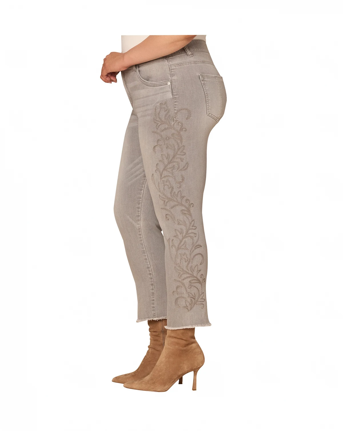 Engineered with AbSolution technology, these slim straight jeans from Democracy feature western embroidery and a fray hem for a rustic touch. A high-rise waist delivers a contemporary, comfortable fit.