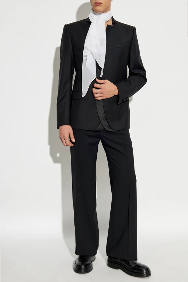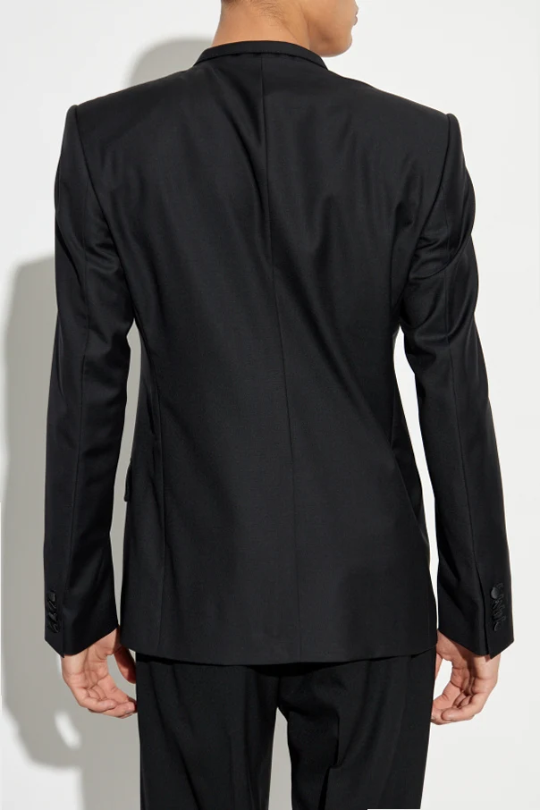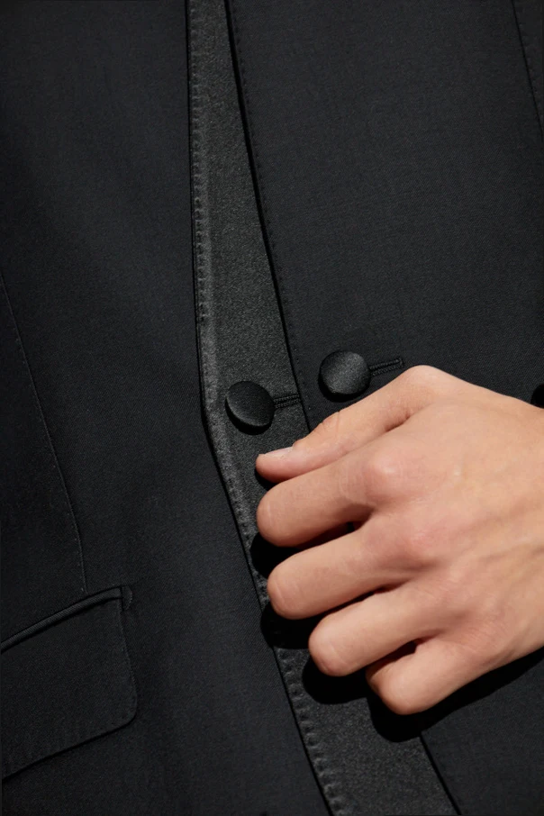 Constructed from the finest black wool, the blazer boasts a smooth texture that underscores its luxurious nature. The material composition of wool, silk, polyester, and elastane ensures both durability and a refined appearance.