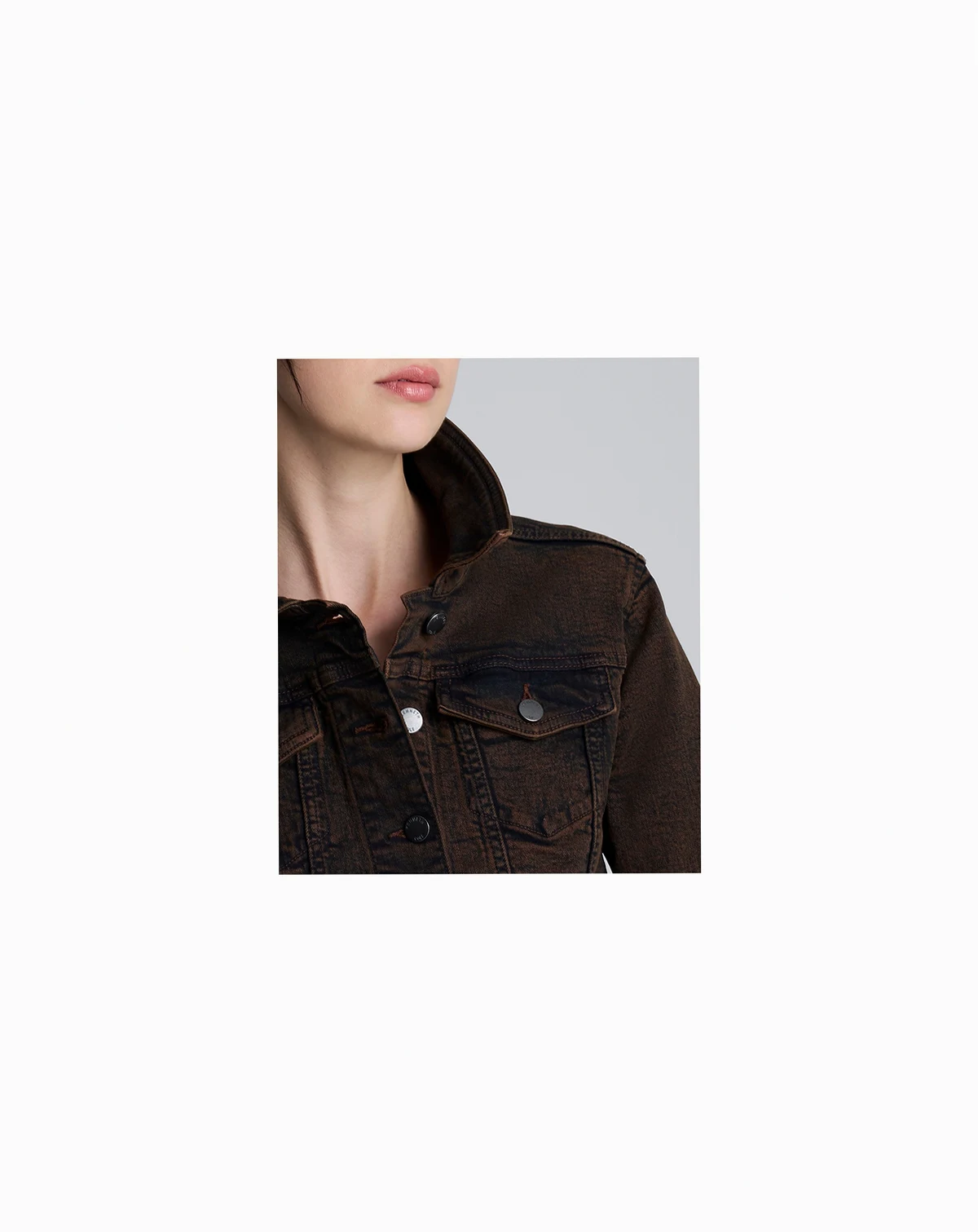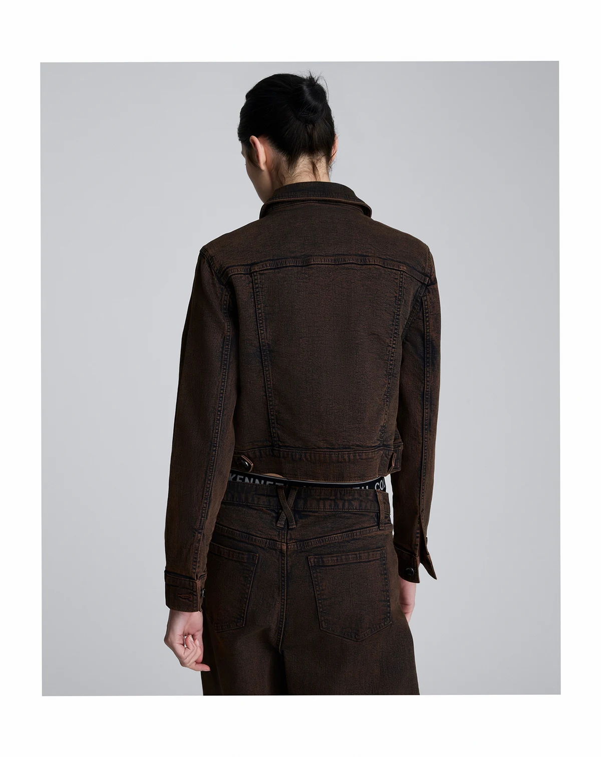 Add a casual-chic touch to your wardrobe with this Kenneth Cole trucker jacket, designed in a cropped style. The five-button closure and two chest flap pockets provide functionality, making it great for layering and achieving an effortless look.