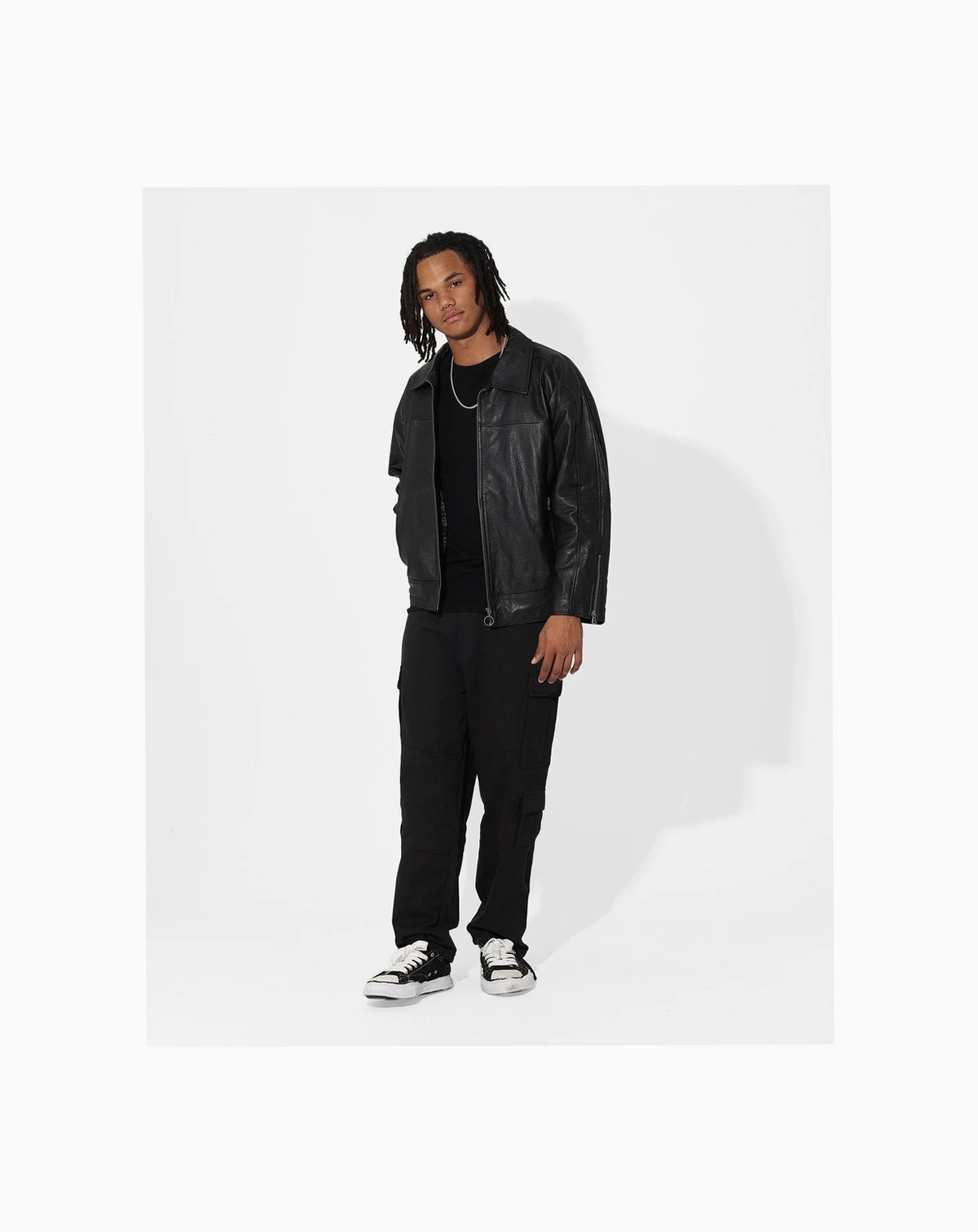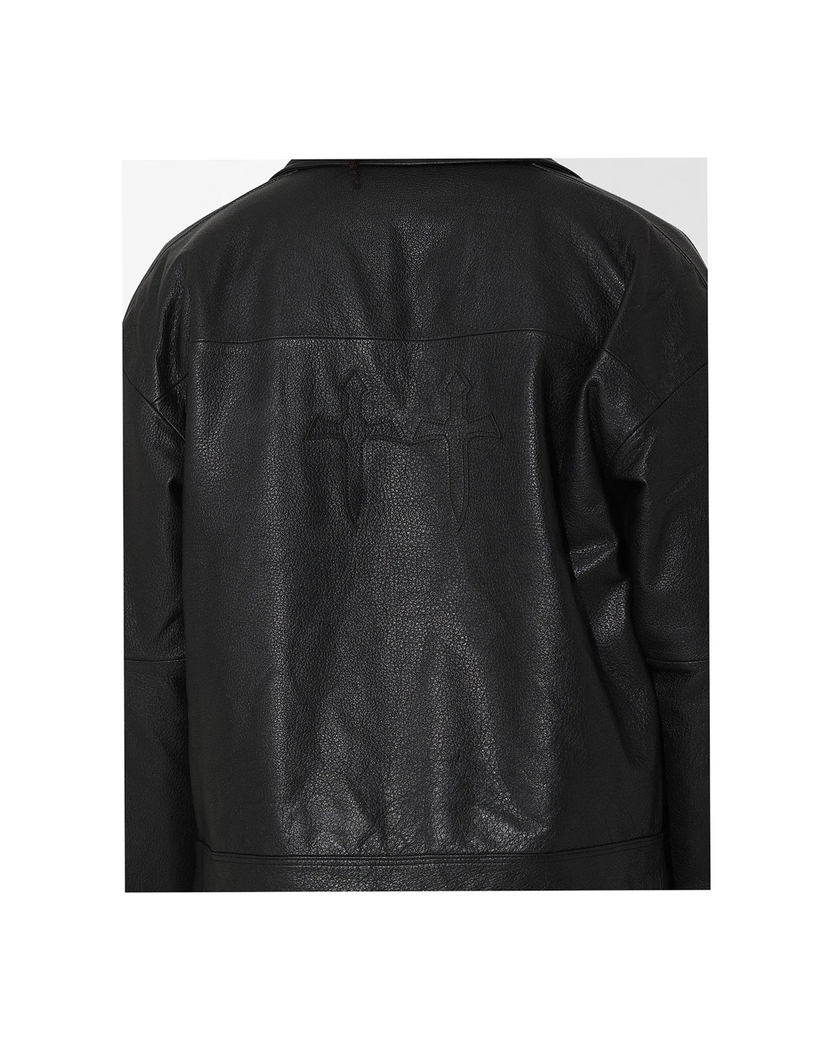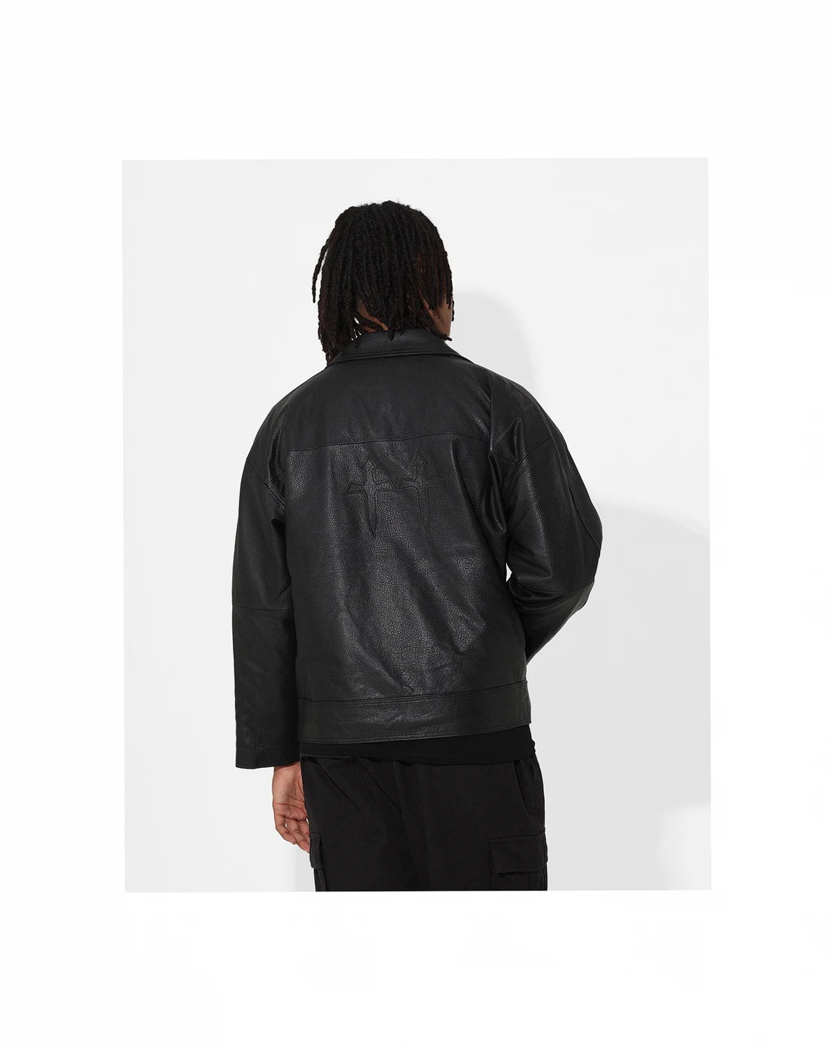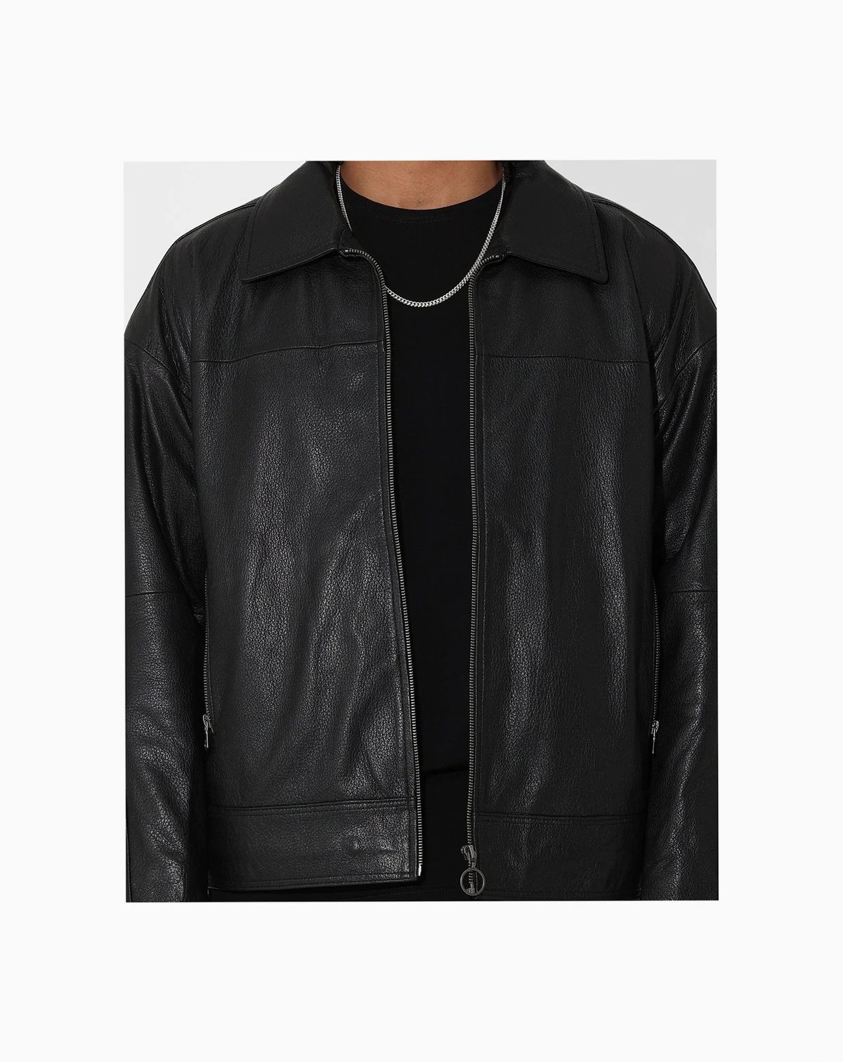 The Oversized Leather Bomber is the only leather jacket you need. Maintaining its essential status in your wardrobe, zip detailing features to the pockets, closures and cuffs for some edge. Simple is key with the applique detailing blending into the back.