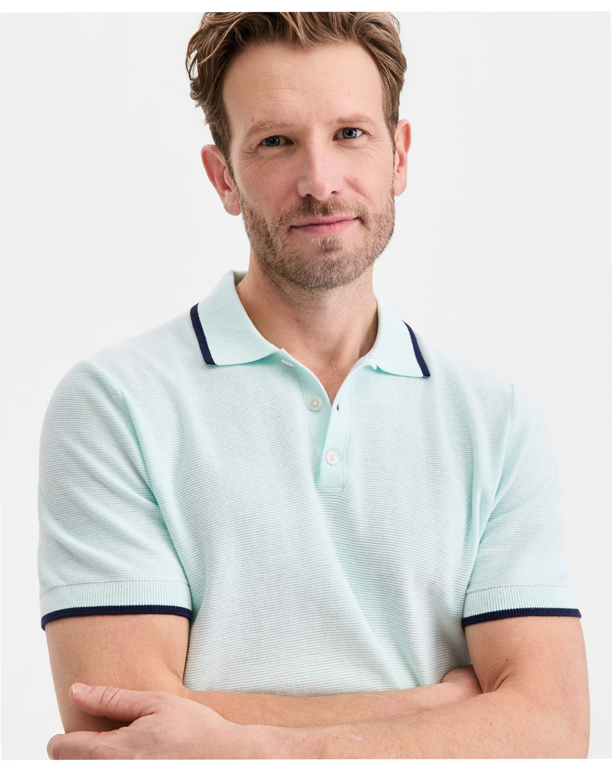 Tipped accents on the collar and cuffs add a neat styling accent to this soft cotton polo shirt from Club Room.
