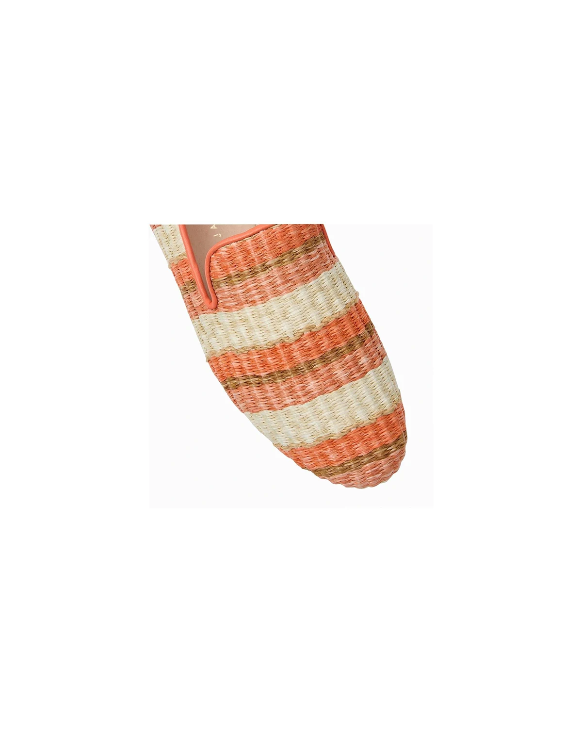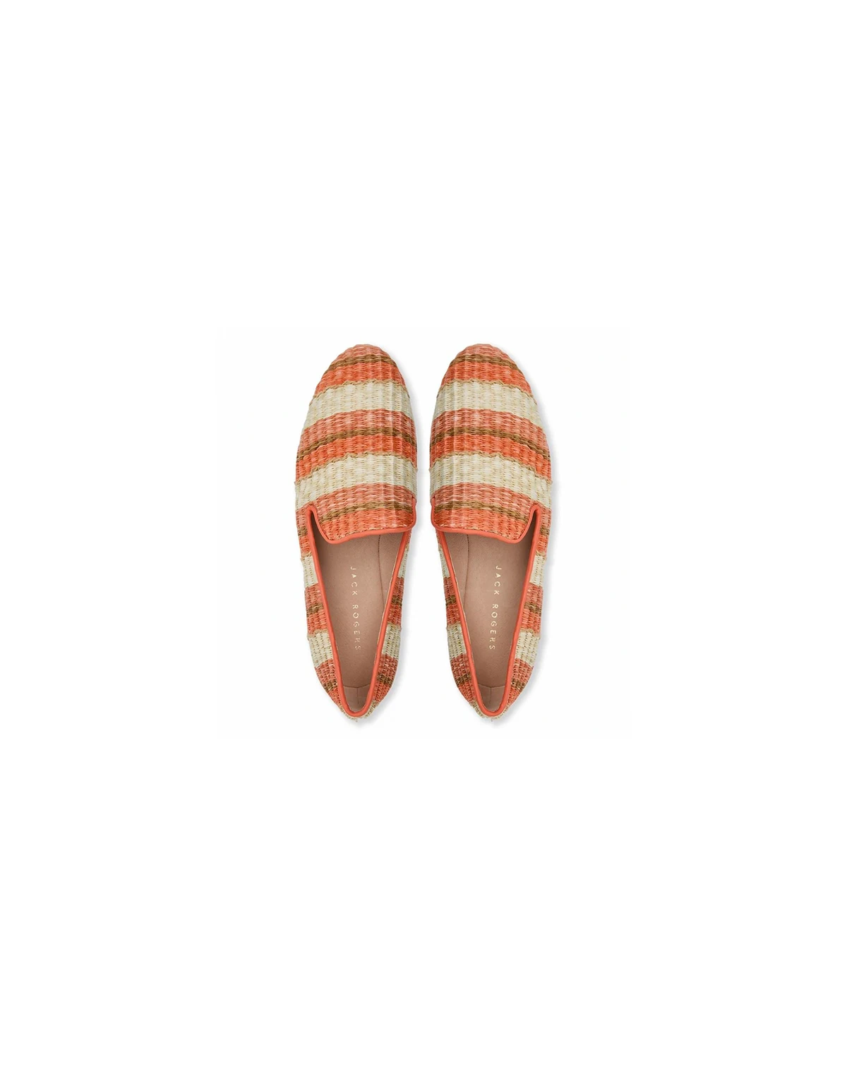 The Bradley Melon Stripe Raffia Loafer reimagines the classic resort silhouette with a fresh, modern touch. Woven raffia in a soft green hue is paired with a supple leather lining for a look that s both relaxed and refined. Lightweight and versatile, these loafers complement everything from breezy linen pants to flowing skirts, offering effortless comfort from daytime outings to evenings by the shore.