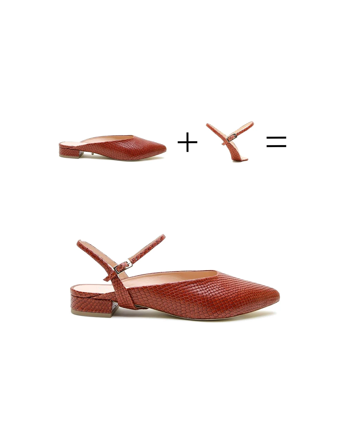 These 2-in-1 brown snake-print slides add luxury to your workday with padded insoles and an extended pointed toe for all-day comfort. Remove the detachable Amal strap, inspired by human rights lawyer Amal Clooney, for effortless slip-ons on the go, or swap in another Alterre strap (sold seperately) to create a whole new look.